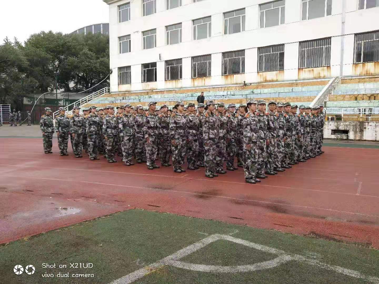 在军训场上同学们,风华正茂;逞飒爽英姿,风采巾帼。蓝天白云,晴空万里代替了习习秋风,烈火骄阳拷打着我们的心。站军姿,练转身,走正步, 练队形。无数次重复的口令让教官的嗓音沙哑,无数回对动作的纠正也曾让教官眉头紧皱,一遍遍的动作示范让教官的额头布满汗滴。但是,沙哑的噪音掩盖不了教官的严谨,微皱的眉头黯淡不了教官的关心,布满额头的汗滴冲淡不了教官的尽职。