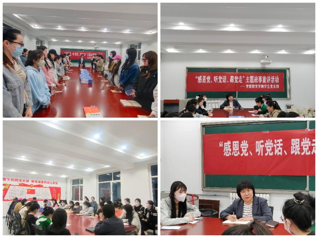 为大力弘扬光荣革命传统,传承红色基因,厚植爱党爱国爱社会主义情怀,筑牢青年党员精神之魂。5月21日晚19:00点,学前教育学院学生党支部在逸夫楼二楼会议室组织开展了“听党话、感党恩、跟党走”主题故事宣讲活动,本次活动由学生党支部书记萨日胡同志主持,在校全体党员参加了本次活动。
