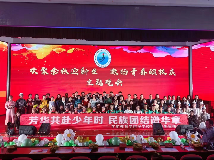 为喜迎建校70周年华诞,11月10日晚,学前教育学院在北院图书馆二楼报告厅举办“欢聚金秋迎新生,激扬青春颂校庆”主题文艺晚会。校党委副书记、校长韩伟新,党委委员、副校长高喜天出席文艺晚会。
