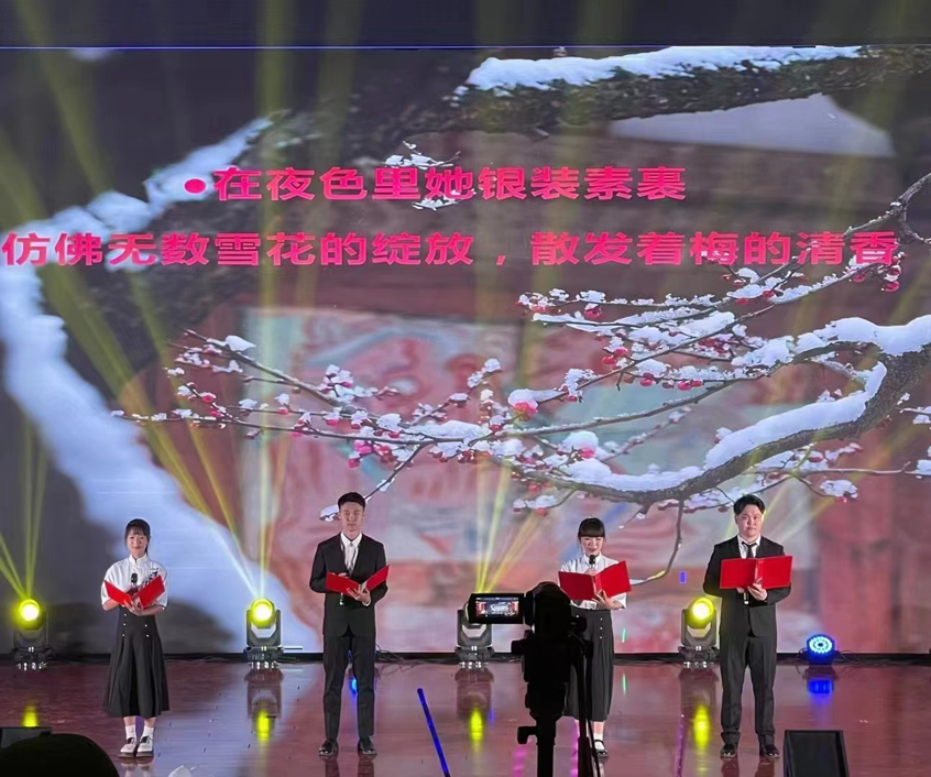 晚会以舞蹈《哈尼宝贝》拉开序幕,旋律青春活泼,舞蹈充满活力,代表师生对学校的热爱,表达着新征程上的无限希望。