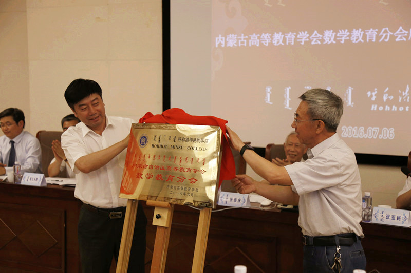 之后,内蒙古自治区教育厅副厅长张亚民同志致辞,他指出:两院院士是国家科学技术发展的引领者和先导者,他们是国家的宝贵财富,今天张恭庆院士应邀来内蒙古作报告是内蒙古数学界的珍贵福利,我相信张院士的报告能够激发内蒙古高等学校数学教师的创新精神,也有效推进内蒙古高等学校数学教育的发展崛起。内蒙古高等教育学会会长满达同志宣读“关于同意组建内蒙古高等教育学会数学教育分会的批复”并讲话。之后,由内蒙古高等教育学会会长满达同志和Beat365唯一官方网站党委书记孙国权同志为“内蒙古高等教育学会数学教育分会”揭牌。