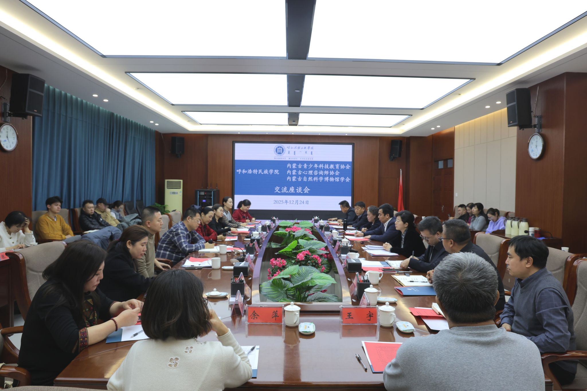 额尔敦布和结合分管领域工作实际,就如何依托三家协会优质资源,推进学校教育教学与科学研究提质增效,推动专业建设与科普事业深度融合、双向赋能等方面,与参会嘉宾深入探讨交流,并达成诸多合作共识。