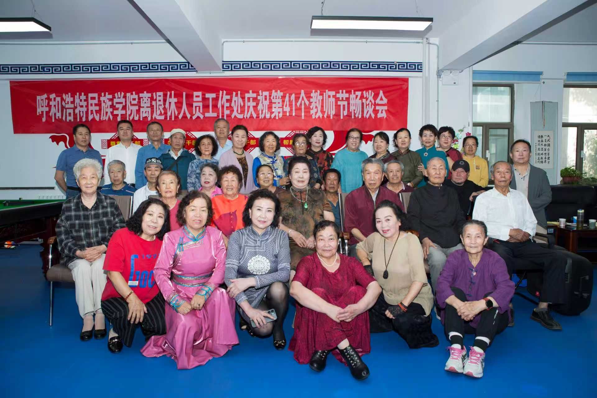 学校统战部部长朝格吉乐图莅临会场,代表学校党委向老同志们致以节日的问候,并介绍了学校高质量发展变化,表达了对老同志们的感谢之意。随后进入畅谈环节。老同志们畅所欲言,回顾与学校同呼吸共命运经历的同时,充分肯定了学校今日所取得的成绩,表示持续关注学校教育事业的发展,积极建言献策。畅谈会后,进入集体观影环节。老同志们在安全有序和谐的环境下,相互交流,观看电影,愉快地度过了第四十一个教师节。