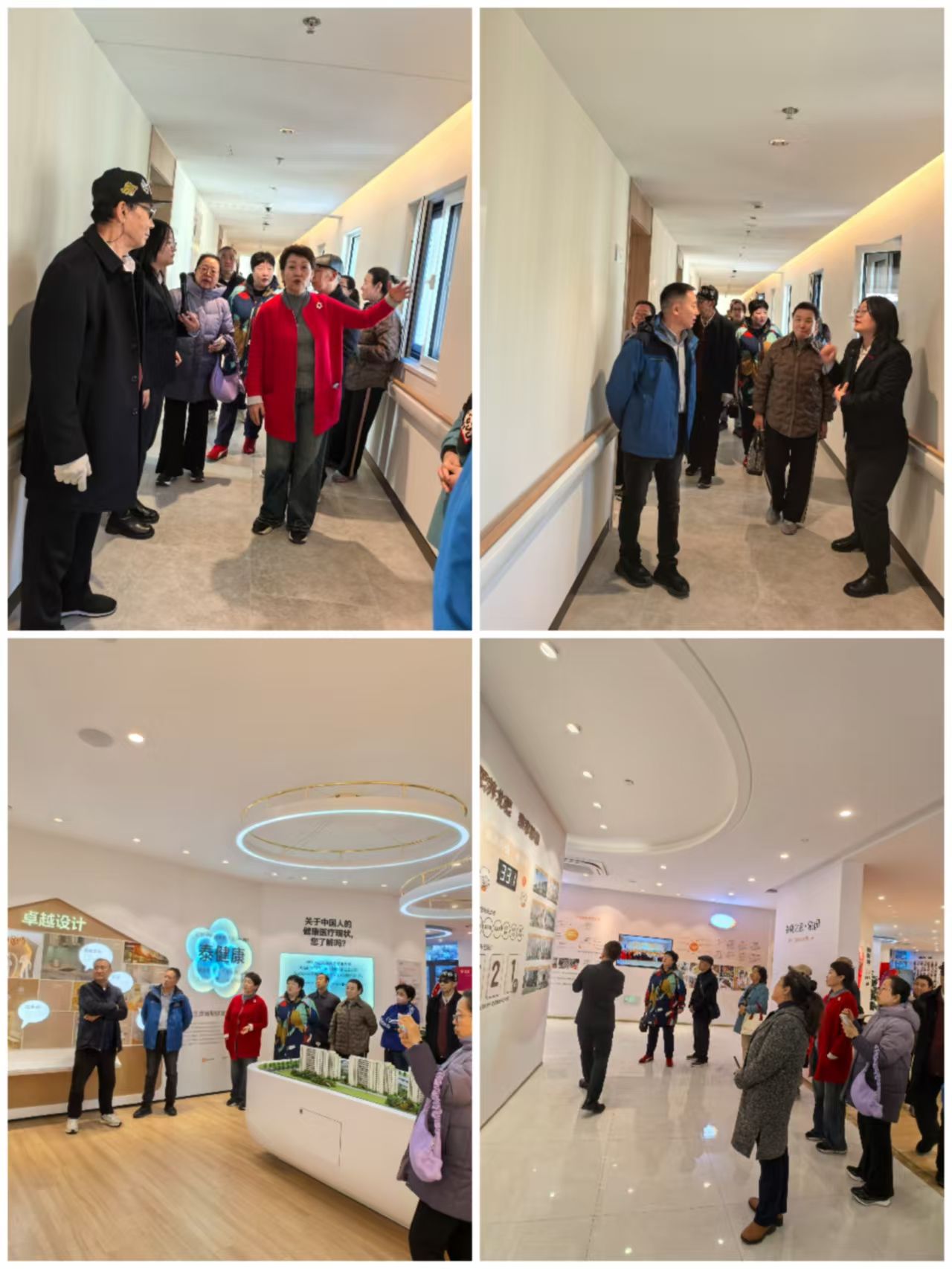 上午9点,老同志们在职工之家楼前集合,乘坐专车抵达蒙园。在社区工作人员的引导下,大家先后参观了居住公寓、医疗康复区、文娱活动中心等区域。温馨舒适的适老化居室配备了紧急呼叫系统;医疗区的专业设备与驻场医护团队让养老更安心;书画室、棋牌室等文娱空间则尽显“老有所乐”的氛围。老同志们边走边看,不时询问服务细节,对蒙园“医养融合”的模式频频点头。