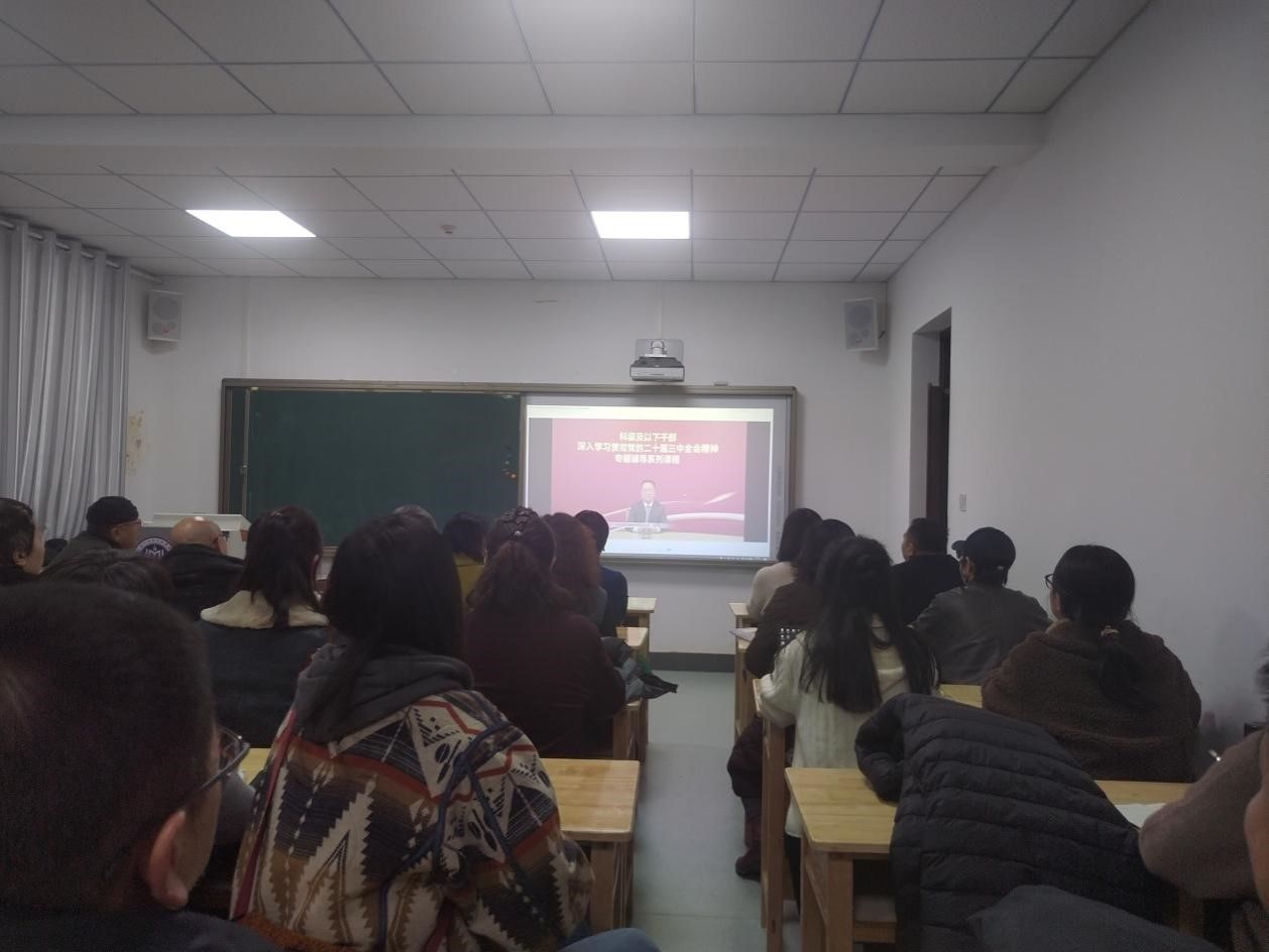 12月12日,美术与设计学院在美术楼212教室组织开展学习贯彻党的二十届三中全会精神培训第三场学习。