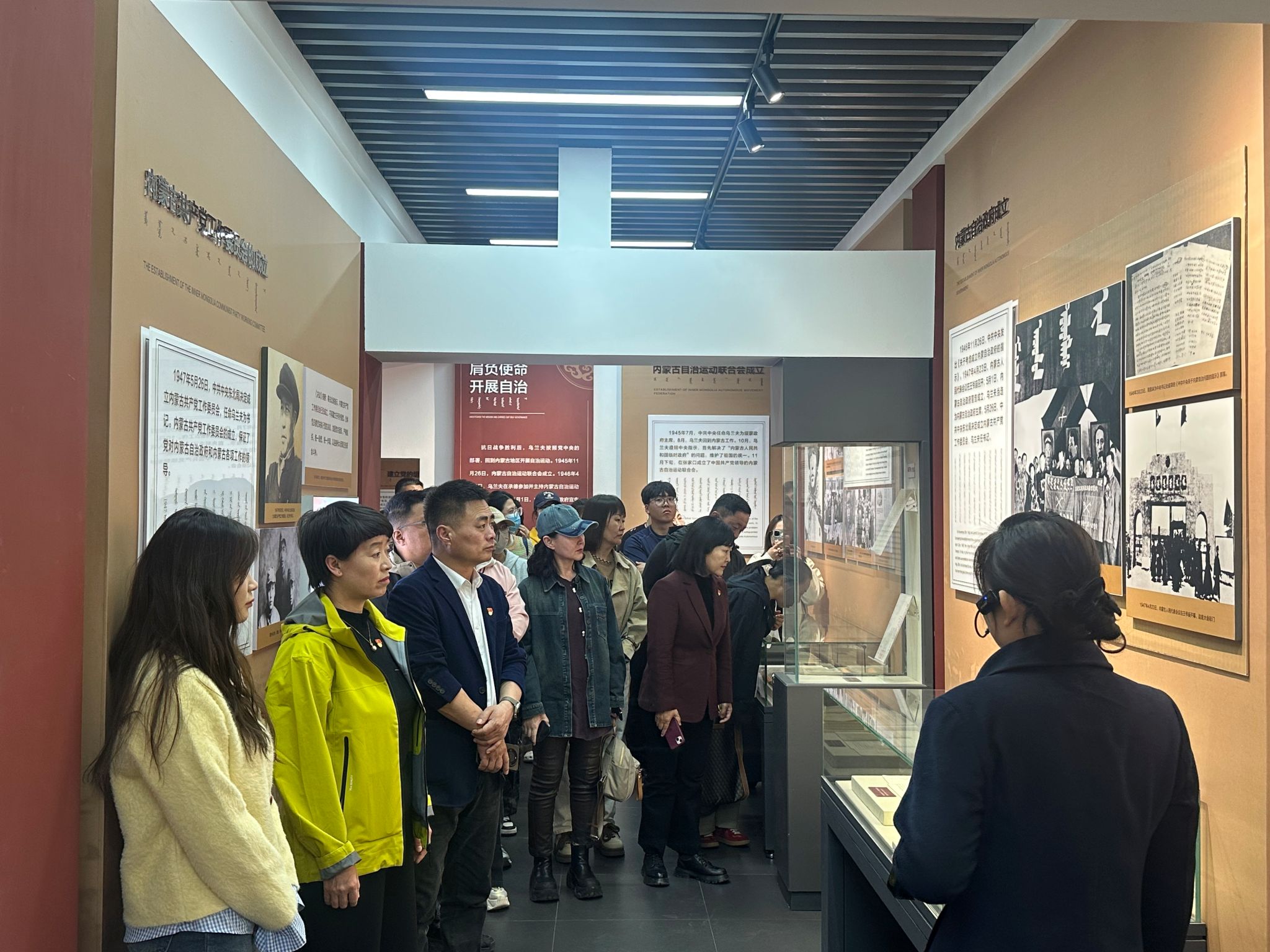 当日下午,师生们怀着崇敬的心情抵达乌兰夫故居。这座具有浓郁民族特色的传统民居,静静地诉说着乌兰夫同志波澜壮阔的革命生涯。在讲解员的引导下,大家依次参观了各个展厅,认真聆听乌兰夫同志的生平事迹介绍。一幅幅珍贵的历史照片、一件件历经岁月的文物展品,生动展现了乌兰夫同志从少年投身革命到为党和人民事业奋斗终身的光辉历程。他为民族解放、国家统一和人民幸福所作出的卓越贡献,深深打动了每一位参观者。