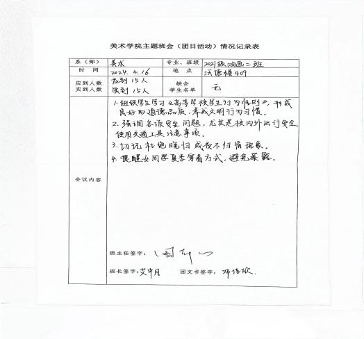 此外,美术学院还专题部署班主任老师要在本周内,组织召开主题班会,做到《高等学校学生行为准则》学习全覆盖。