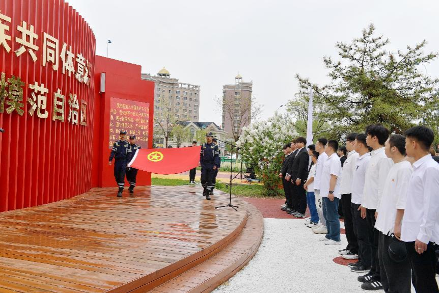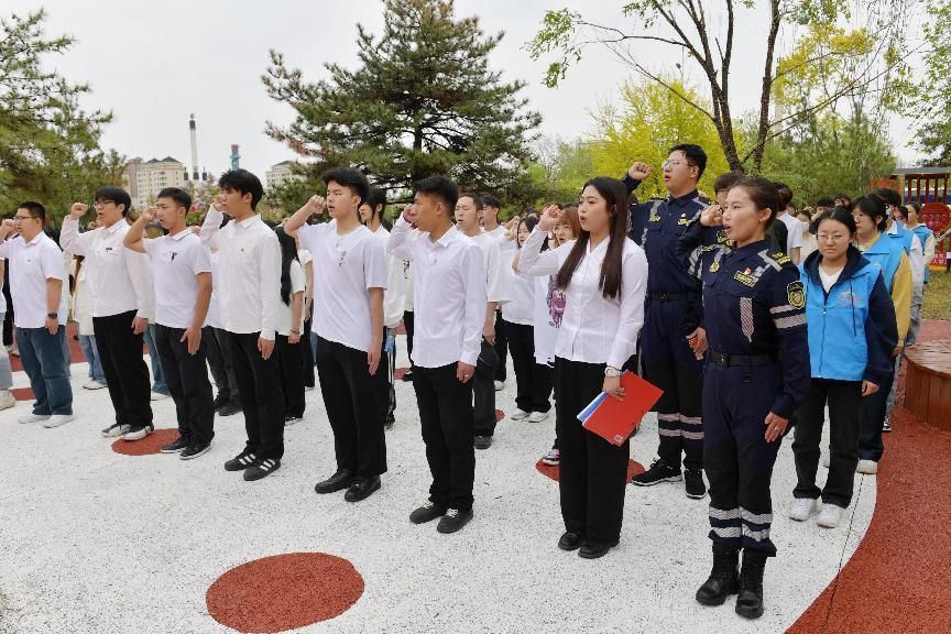 为深入学习贯彻习近平新时代中国特色社会主义思想,贯彻落实习近平总书记关于青年工作的重要论述,激发广大团员和青年纪念和传承五四精神,勇担青春使命、争做时代新人,4月28日上午,Beat365唯一官方网站美术学院团总支与回民区团委、内蒙古北疆志愿服务联合会、内蒙古师范大学青年政治学院、内蒙古建筑职业学院等四家单位在回民区“红石榴”志愿服务主题公园联合举办了“青春奋进新时代  挺膺担当向未来”2024年集中规范性入团仪式。我院团总支书记魏伟、辅导员吴丰林带领2024年新入团团员和“红石榴”志愿服务队成员参加活动。