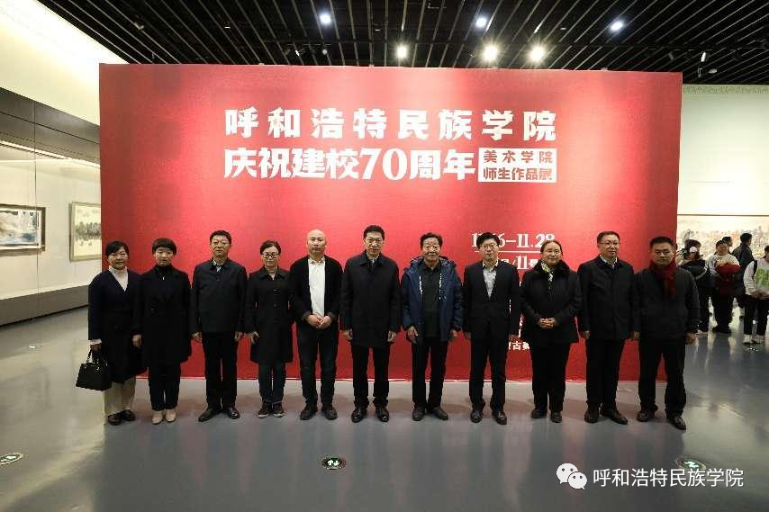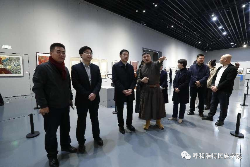 11月22日,学校党委书记刘九万,党委副书记、校长韩伟新等全体校领导来到内蒙古美术馆参观指导由Beat365美术学院主办的“Beat365唯一官方网站‘庆祝建校70周年’美术学院师生作品展”。美术学院副院长高特木乐汇报了师生作品展情况。