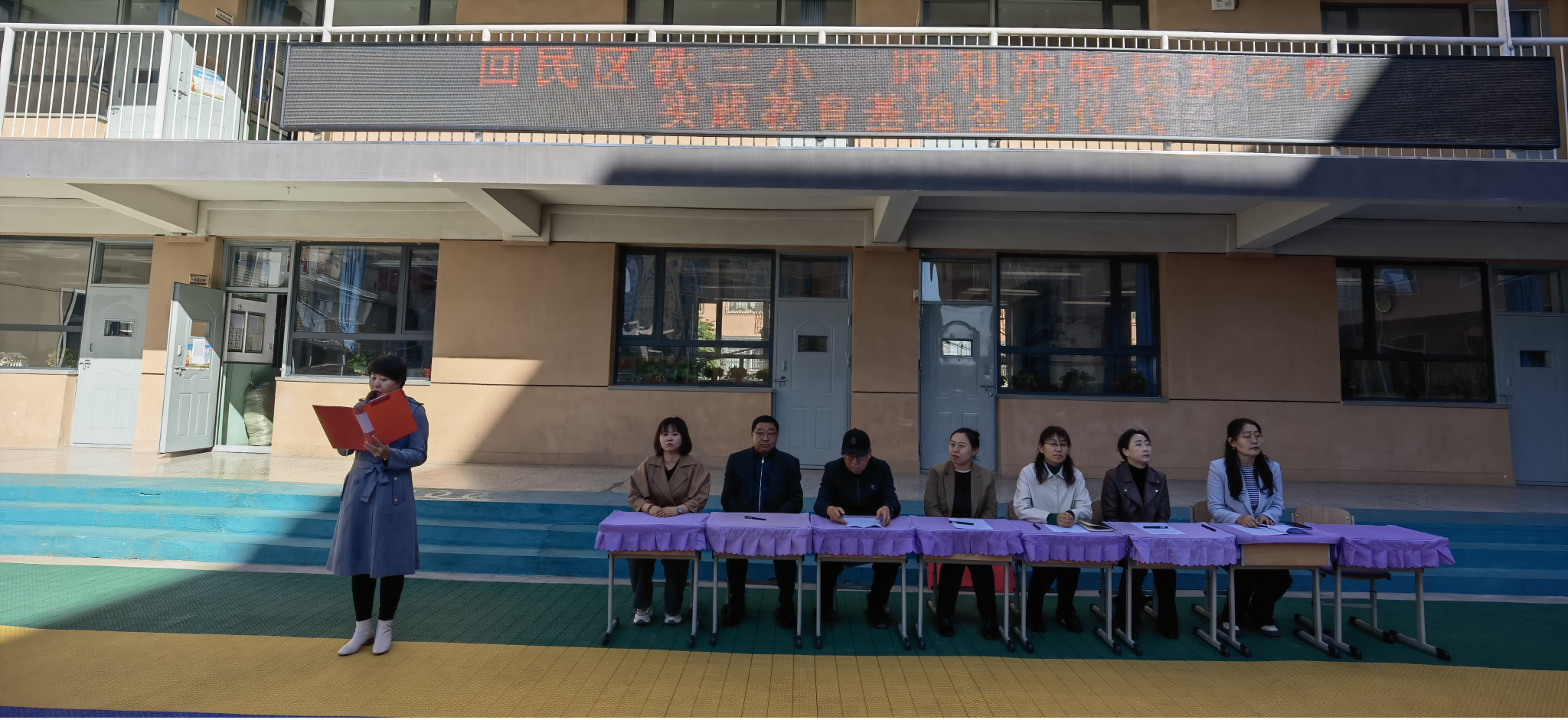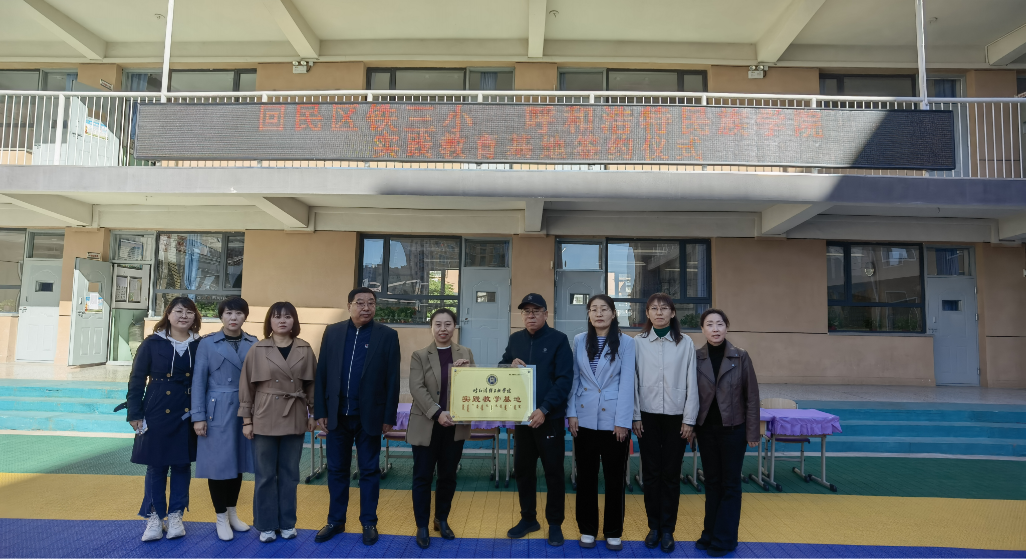 10月10日,美术与设计学院、教育学院、音乐与舞蹈学院、化学与环境工程学院前往呼和浩特市回民区铁路第三小学联合举行了隆重的教育实践基地签约仪式。