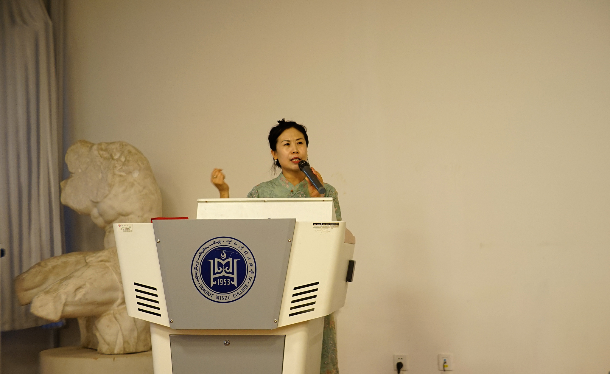 6月14日晚,美术学院邀请到内蒙教研室美术兼职教研员,内蒙古自治区美术学科带头人,呼和浩特市回民区教育教学研究中心中小学美术、综合实践活动教研员王涛在美术楼多媒体教室举办了第六期《中学名家讲坛》系列讲座。讲座由塔娜副院长主持,学院教学科研办、理论教研室主任、部分老师以及2021级、2023级专升班美术学专业120名学生聆听讲座。