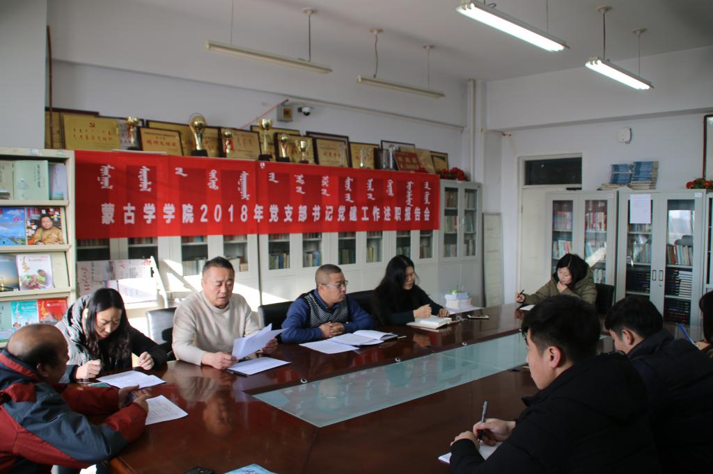 12月17日,蒙古学学院党总支在都林楼408资料室召开支部书记述职评议会,会议由学院党总支书记周双喜主持,总支委员及各支部书记、支委委员,师生党员代表等参加会议。
