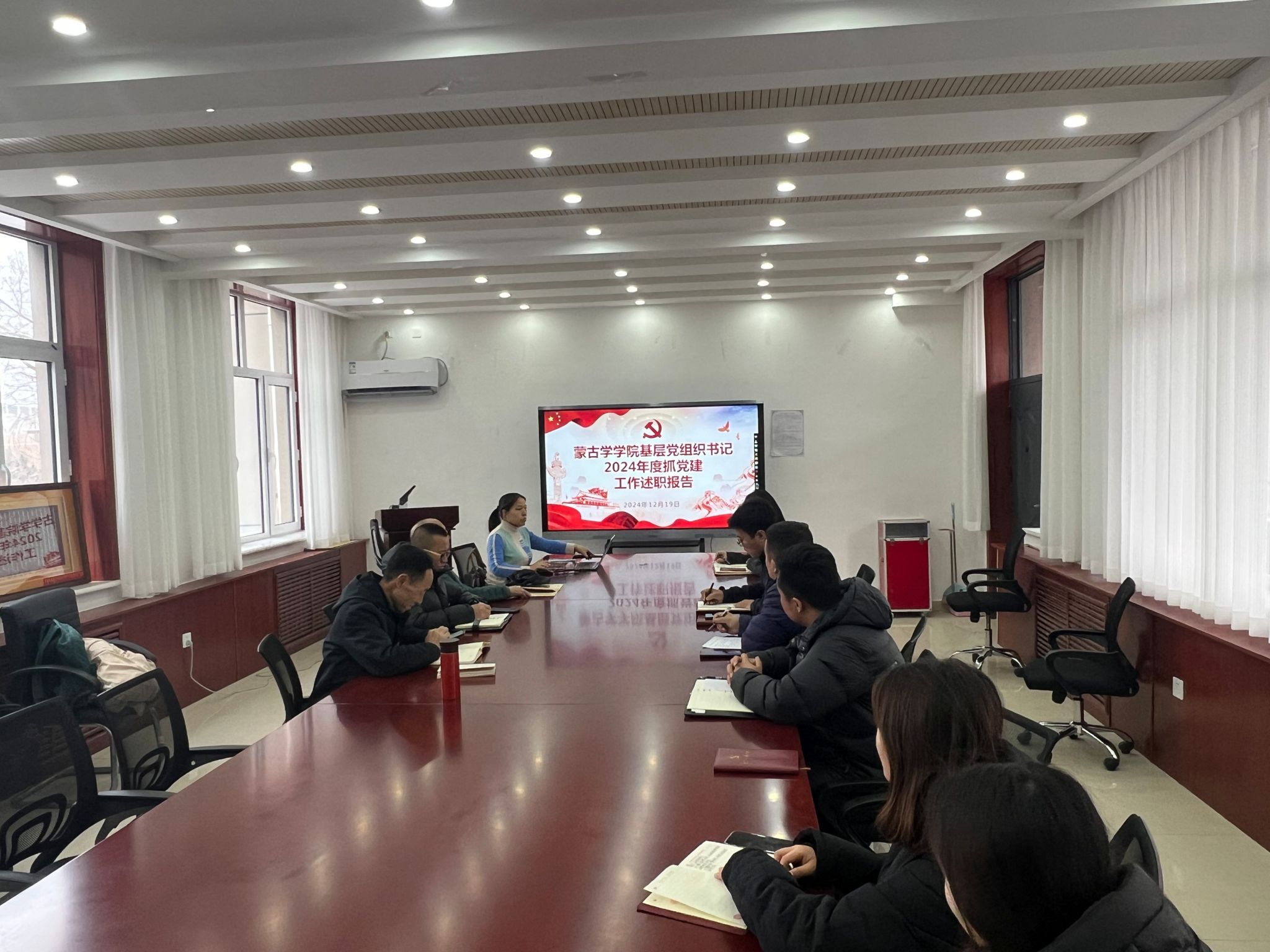 2024年12月19日下午,蒙古学学院在崇正楼316会议室召开2024年度党支部书记抓党建工作述职评议会议。学院党总支委员、教工党支部党员、学生党支部委员、学生党员代表参加会议。会议由阿古达木书记主持。