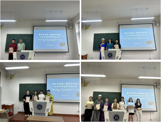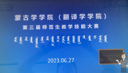 为了深入贯彻党的二十大精神,学习贯彻习近平总书记关于教育的重要论述,落实《关于全面深化新时代教师队伍建设改革的意见》,我院于2023年6月27日下午召开了第三届师范生教学技能大赛。大赛共参加10名学生,院长王福清出席本次大赛,套格敦白乙拉、关金花、扎拉嘎夫担任评委。
