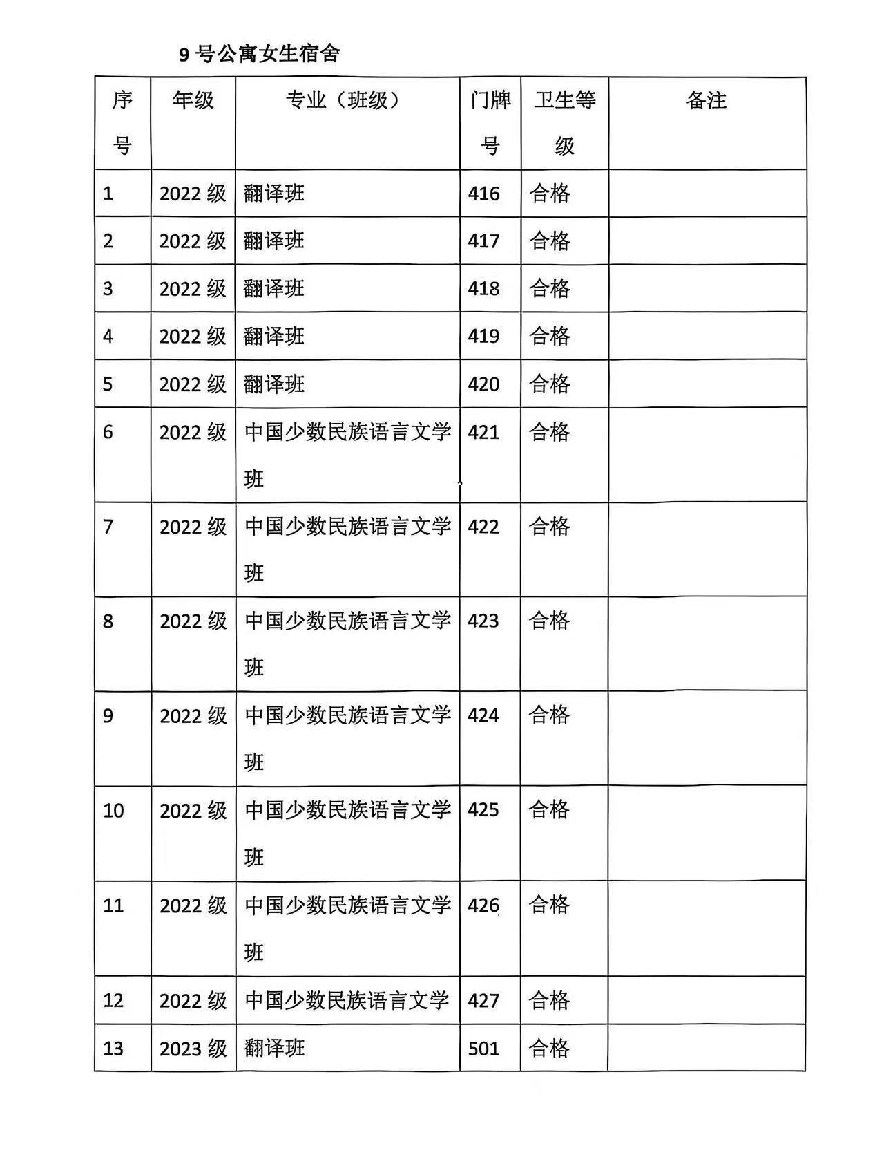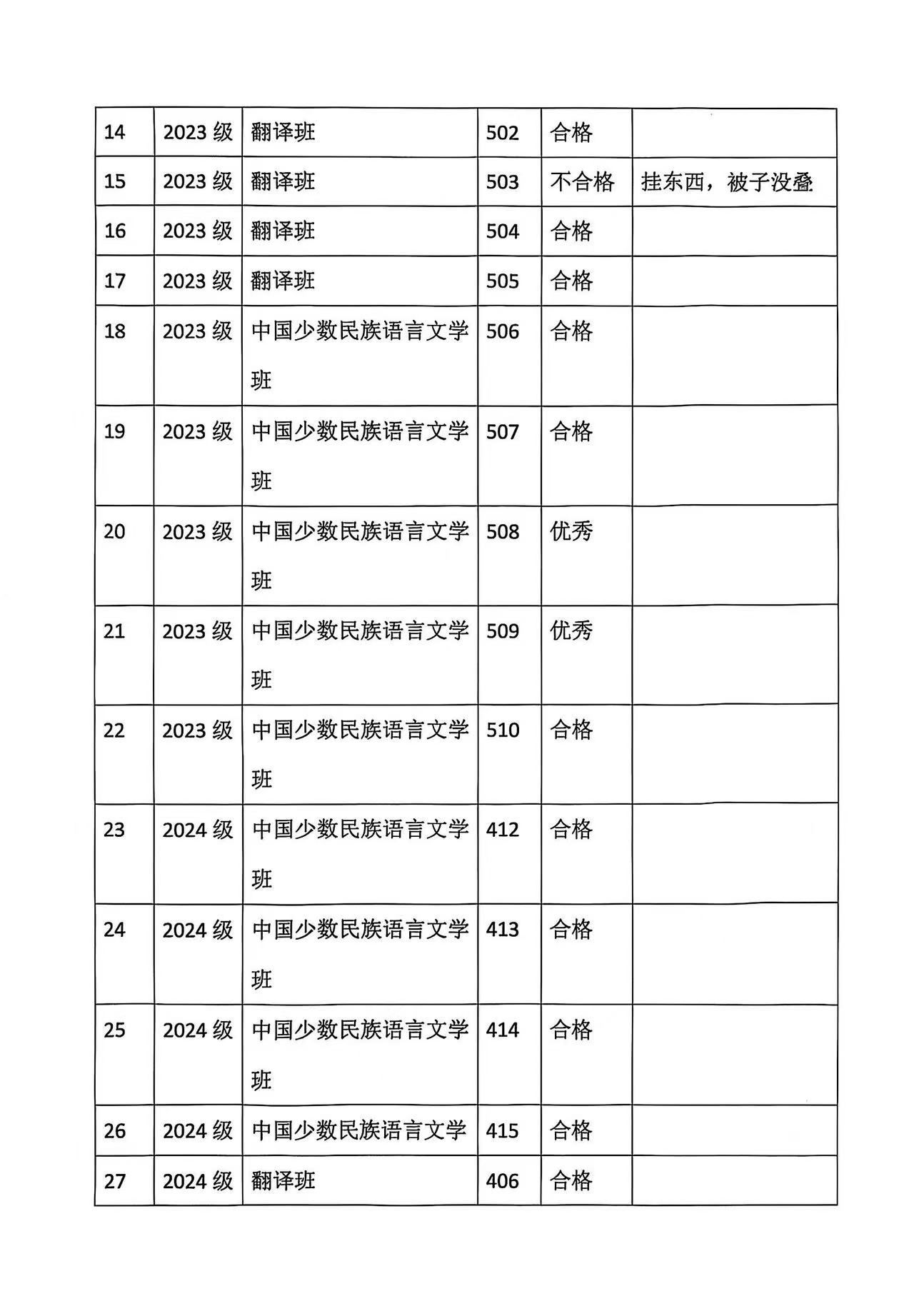 蒙古学学院宿舍卫生检查情况4.8