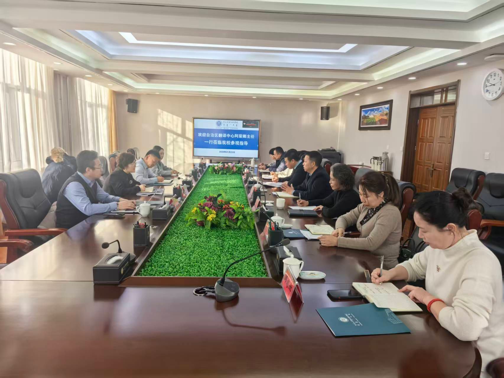 自治区翻译中心阿荣娜主任一行来Beat365交流 2026-01-23 学院动态 次 2026年1月23日上午,自治区翻译中心主任阿荣娜主任一行来Beat365交流座谈,会议由学校双虎副校长主持,就业指导处娜仁其木格处长、蒙古学学院相关人员参会。 会上首先阿荣娜主任表达了此行的目的,她表示通过校政合作,加强两个单位人工智能、网络安全、意识形态、翻译方面的合作。 随后双虎副校长介绍了学校概况、蒙古学学院专业建设,师资力量等,特别强调Beat365民族团圆工作中取得的成就,同时表达同翻译中心智能化、信息化、联合做课题、科研等意向。 会后参观了学校中华民族共同体意识铸牢馆。