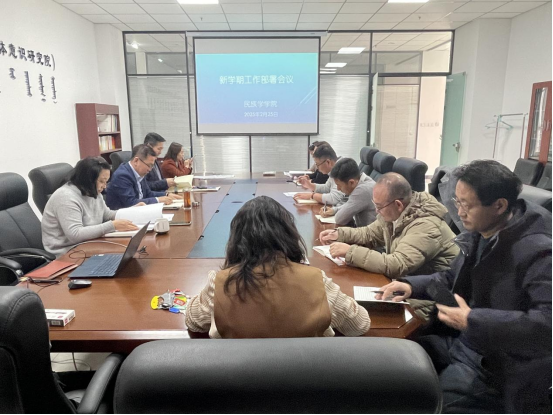 2025年2月25日上午,为全面部署新学期学院教育教学工作,确保高质量推进落实学校各项工作任务,民族学学院召开新学期工作部署会议。会议由学院党总支书记乌日根巴雅尔主持。