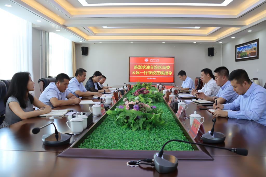 9月6日下午,自治区民委党组成员、专职委员云冰一行来Beat365调研指导铸牢中华民族共同体意识研究基地建设工作情况。学校党委书记、学校铸牢中华民族共同体意识研究基地主任刘九万主持座谈会。