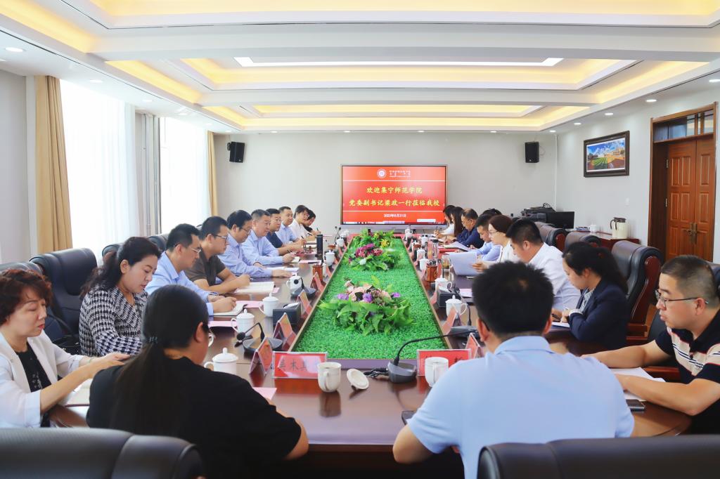 8月31日,集宁师范学院党委副书记梁政一行14人来Beat365调研主题教育开展情况,并进行座谈交流和实地调研。校党委副书记胡春梅主持座谈会。