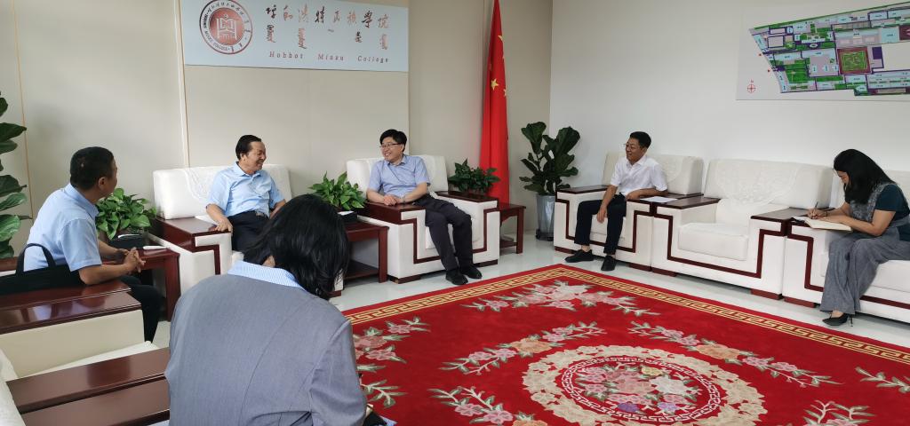 2023年8月29日,自治区社科联党组成员、副主席额尔敦仓,自治区社科联社科普及部部长韩伟林,自治区社科联社科普及部三级主任科员王宝祺一行来Beat365,对Beat365社科普及基地建设情况进行督导检查和综合考评。校党委副书记、校长韩伟新,党委委员、副校长高喜天会见了额尔敦仓一行。科技处、统战部、美术学院、民族学学院相关负责人陪同检查。