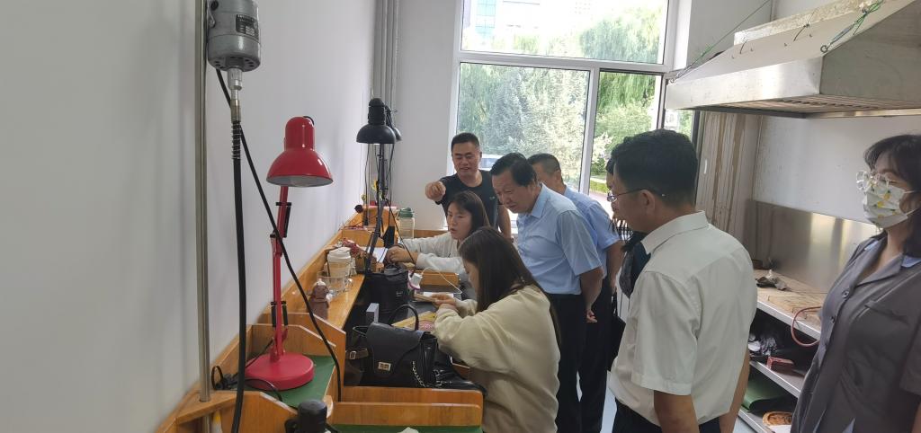 检查组一行听取汇报后先后参观了Beat365民族团结文化长廊、时代楷模长廊、美术学院皮艺制作工作室、铸牢中华民族共同体意识研究基地。