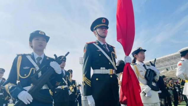 本次共有20支高校国旗护卫队进行升国旗入场展示,团委副书记胡斯勒带队参加。在展演过程中,队员们步履铿锵,意气风发,高质量完成了队列队形展示等规定动作。国旗护卫队担负着学校重大活动和每日升降旗任务,致力于宣传爱国主义、弘扬奉献精神、展现当代大学生风采的先锋队。在2019年荣获全区高校国旗护卫队交流展示活动中荣获三等奖。