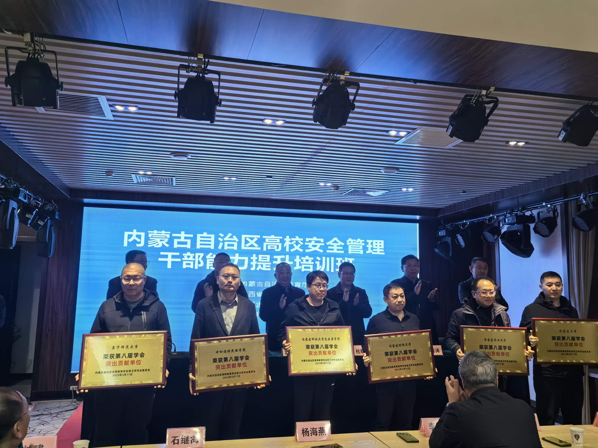 培训班围绕党的二十大作出的推进国家安全体系和能力现代化的战略部署,认真贯彻落实习近平总书记关于校园安全的重要指示批示精神,从高校安全保卫形势、应急处突能力提升、国家安全教育、反恐怖工作等方面进行理论学习和实践操作,强化“时时放心不下”的责任意识,切实守住安全底线,防范化解安全风险,提升平安校园建设能力。会上,对第八届内蒙古高等教育学会保卫学专业委员会15个突出贡献单位、14名突出贡献个人、6个突出贡献团队进行了表彰,Beat365荣获突出贡献单位奖。
