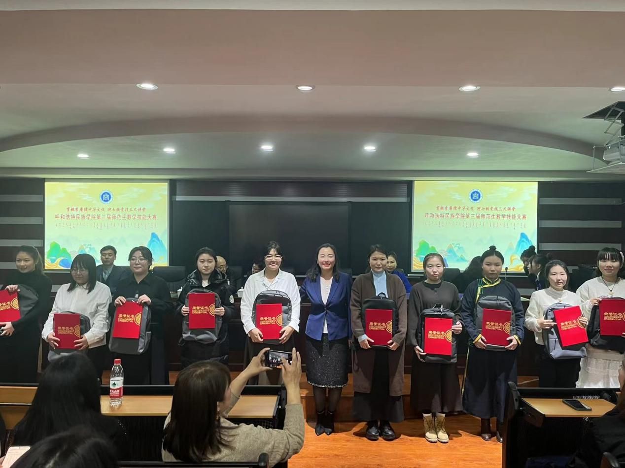闭幕式上,教务处副处长姚全福宣读比赛结果,韩伟新校长同特邀评委一起为获奖集体和个人颁奖。大赛评委组组长、回民区教育局教科研室小学部负责人、小学语文学科教研员林中榕就举办师范生技能大赛的意义和选手们的精彩表现进行了生动点评。