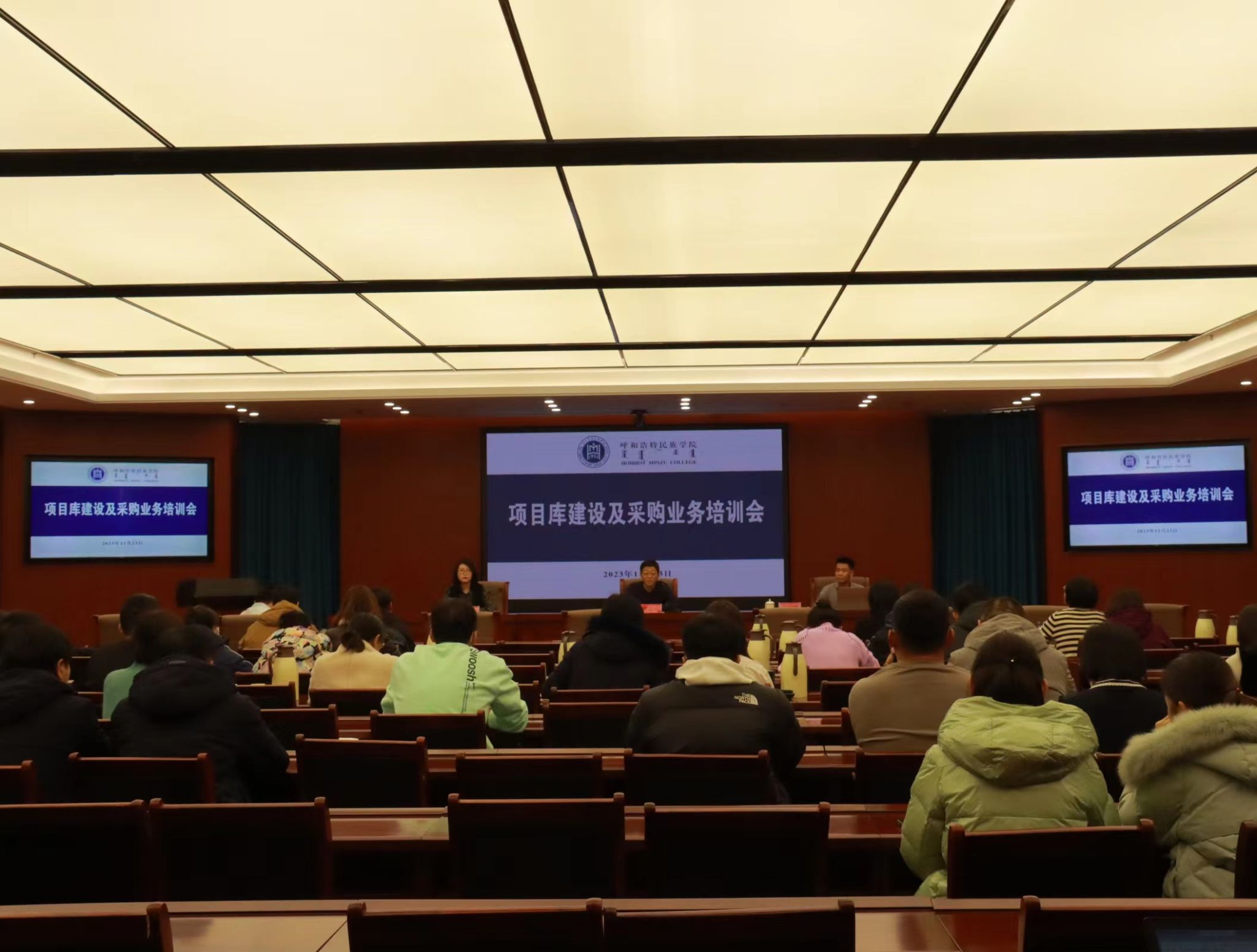 11月23日下午,学校举办项目库建设及采购业务培训会。校党委委员、副校长高喜天出席会议并做动员讲话。各部门、各学院负责人、报账员共计90余人参加本次培训。财务处处长王小梅主持会议。