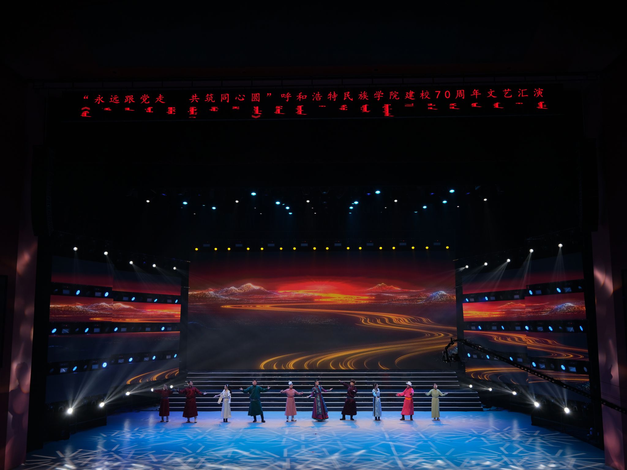 师生、校友们通过音乐、舞蹈、朗诵、歌曲串烧等丰富多彩的艺术形式,紧密结合学校历史、辉煌成就、精神传承等内容,生动展现了一代代呼民院人薪火相传、砥砺向前的精神风貌,讲述着呼民院人的坚守和担当,共贺学校七十年华诞。