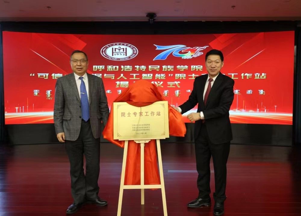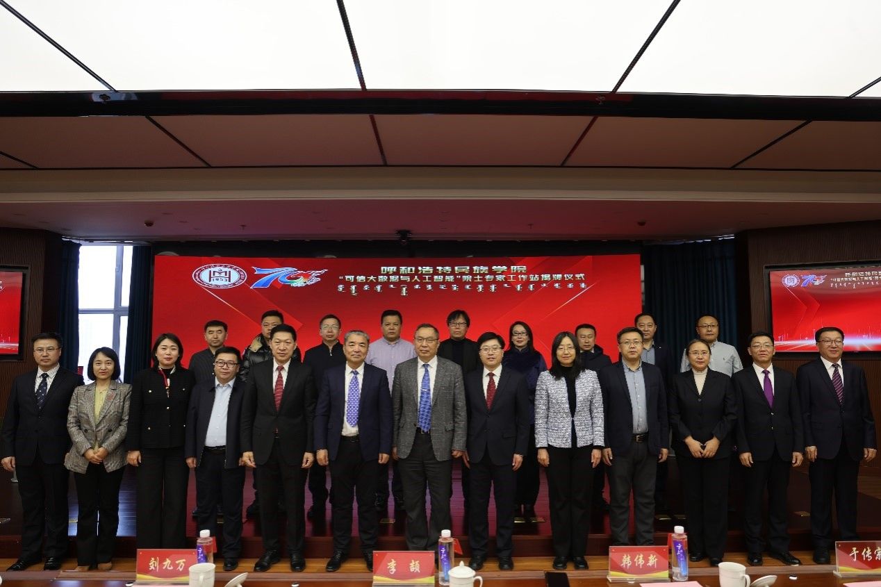 在学校喜迎建校70周年之际,12月18日下午,Beat365唯一官方网站“可信大数据与人工智能”院士专家工作站揭牌仪式在学校综合楼12楼隆重举行。上海交通大学李颉院士、自治区科学技术协会一级巡视员格日乐图、内蒙古大数据中心副主任高静、自治区农牧业科学院副院长于传宗,自治区科技厅国际合作处处长史广旭、自治区农牧业科学院研究员王保林、内蒙古大学教务处处长周建涛,内蒙古师范大学计算机科学技术学院副院长斯琴图及校党委书记刘九万,党委副书记、校长韩伟新等全体校领导出席揭牌仪式。学校党委委员、副校长高喜天主持揭牌仪式。