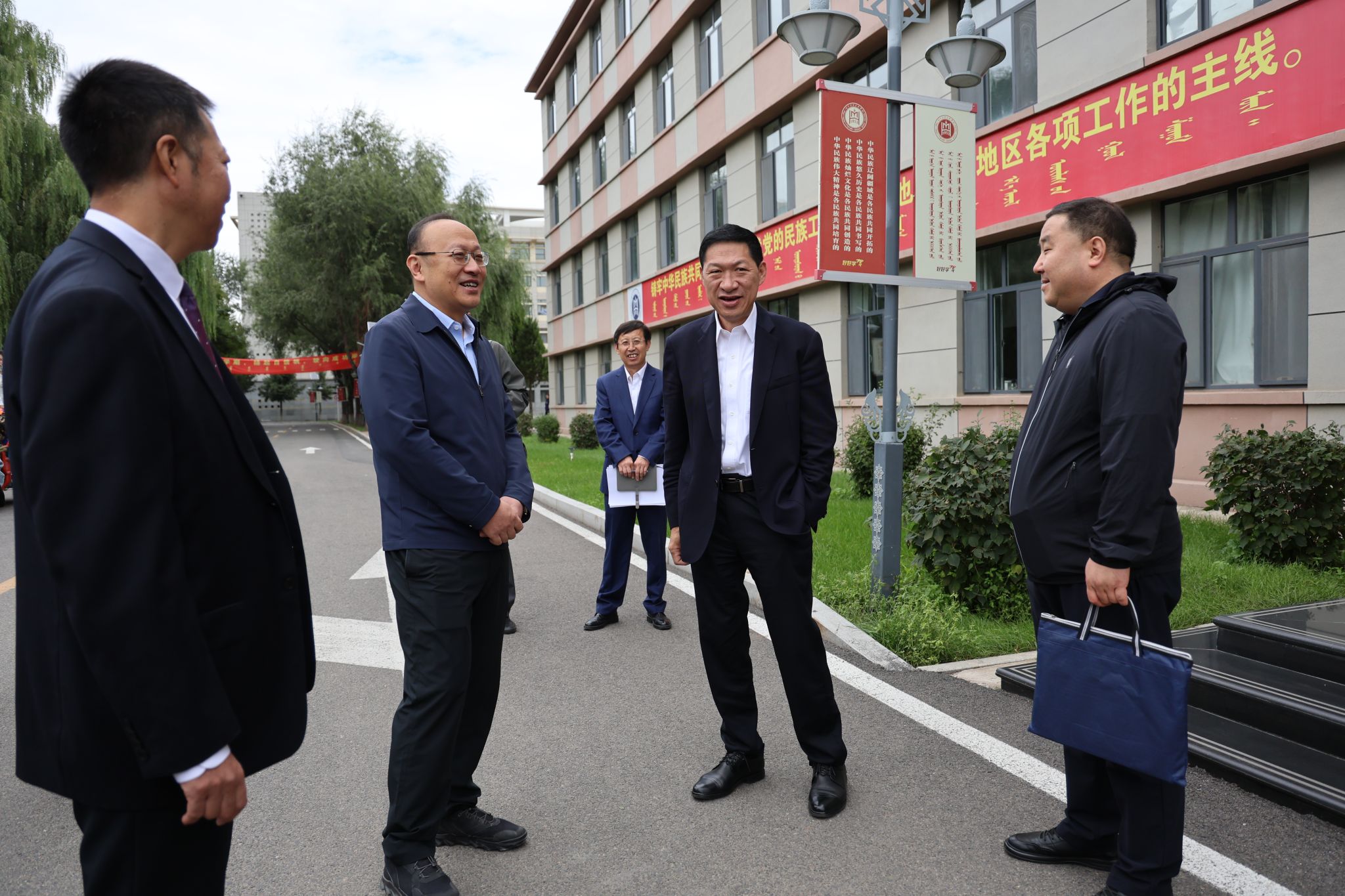 座谈前,校党委书记刘九万、副校长双虎与谷磊一行作了沟通交流。