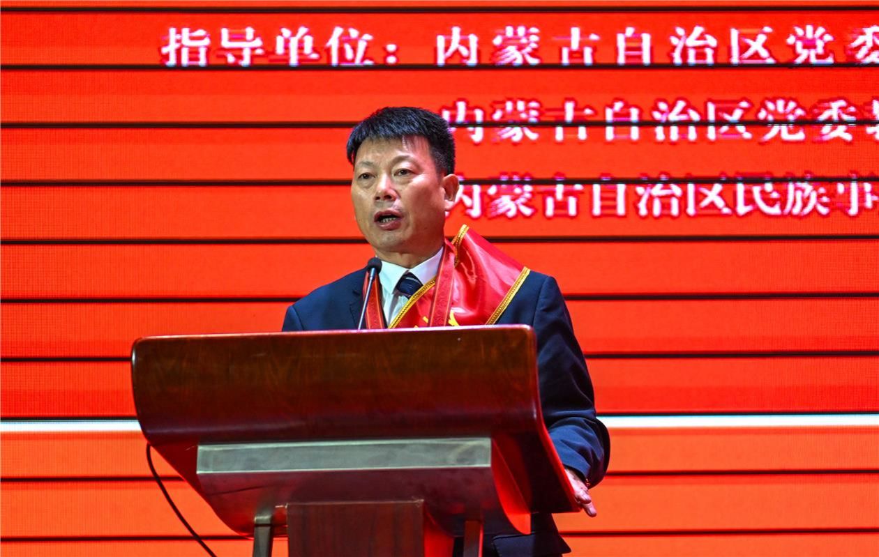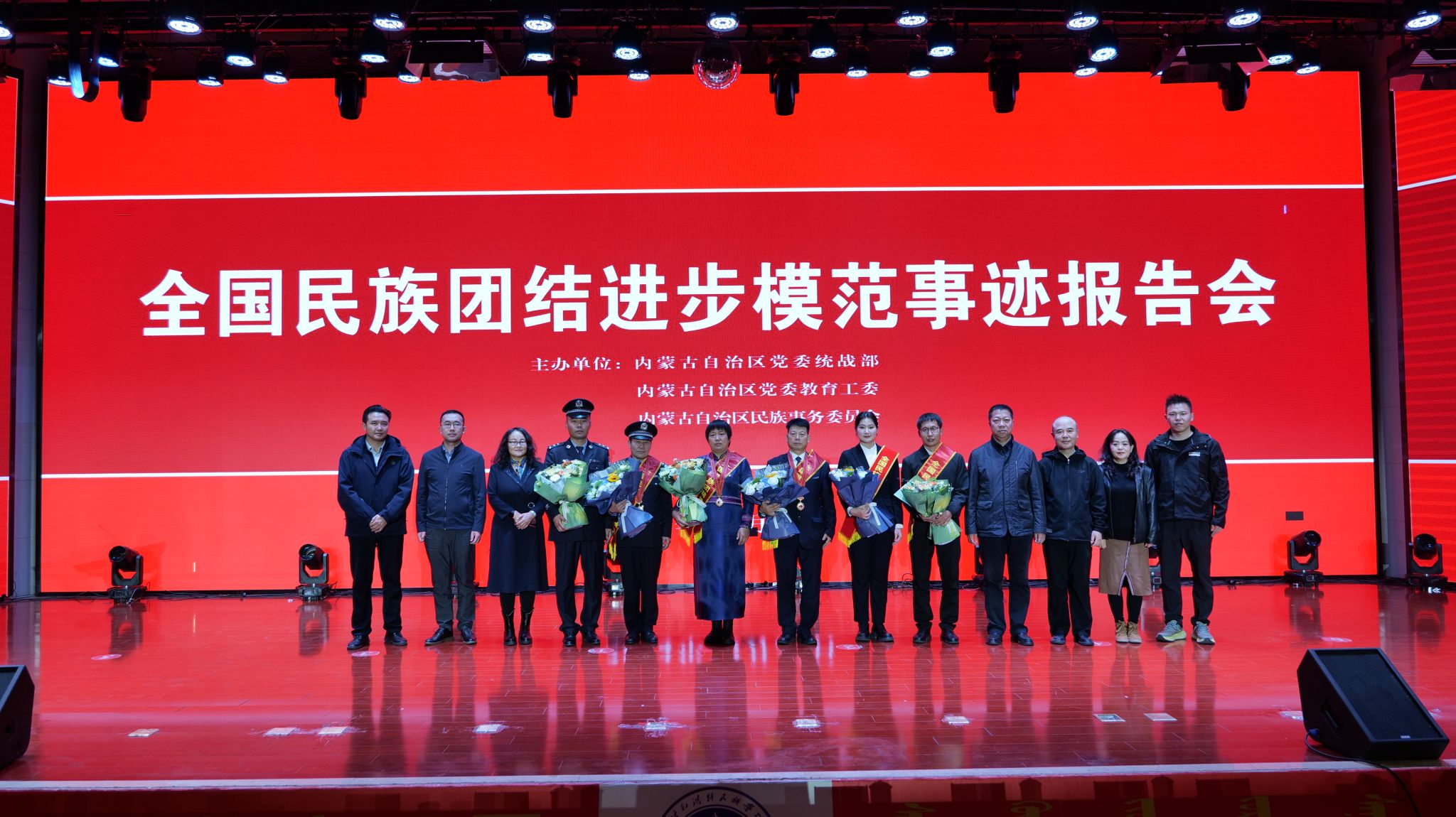为深入学习贯彻落实习近平总书记在全国民族团结进步表彰大会上的重要讲话精神,充分发挥好模范典型引领作用,大力宣传全国民族团结进步模范集体和模范个人的事迹和贡献,营造崇尚模范、学习模范、争当模范的浓厚氛围,10月31日,由内蒙古自治区党委统战部、内蒙古自治区党委教育工委、内蒙古自治区民族事务委员会主办的全国民族团结进步模范事迹报告会在Beat365成功举行。自治区民委党组成员、副主任康宇凤,自治区党委统战部宣传教育处处长杨洁,自治区党委统战部二处副处长高鹏华 ,自治区教育工委宣传部、统战部部长,自治区教育厅思想政治工作处处长刘惠,自治区民委办公室正处级干部刘智博,自治区民委民族团结促进处处长李日树、副处长巴萨日娜,校党委书记刘九万,党委委员、副校长高喜天,党委委员、副校长双虎出席活动;自治区驻呼各高校、Beat365师生代表共600余人到会聆听。