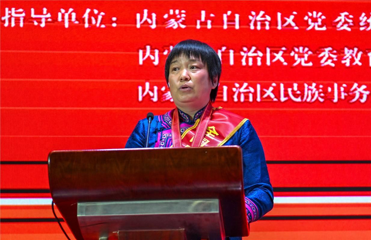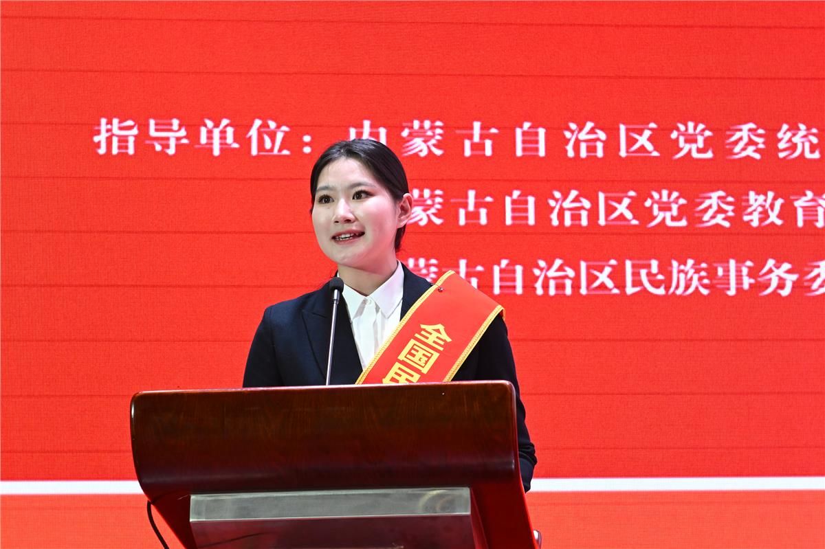 本次活动邀请全国民族团结进步模范个人代表齐晓景、何生海、宝音得力格尔、尼玛家属以及全国民族团结进步模范集体代表自治区党委讲师团、鄂尔多斯市乌审旗绿化委员会进行宣讲。报告会上,全国民族团结进步模范个人、兴安盟科右前旗科尔沁镇人民政府乡土人才孵化中心主任齐晓景,分享了带动各族群众增收致富的奋斗历程;全国民族团结进步模范个人、内蒙古大学中华民族共同体研究中心教授何生海,以“勇作铸牢中华民族共同体意识的排头兵”为主题进行了宣讲;全国民族团结进步模范个人、巴彦淖尔市乌拉特后旗公安局潮格温都尔镇派出所教导员宝音德力格尔,讲述了自己扎根基层一线服务各族群众、促进边境地区民族团结进步的动人故事;阿拉善盟阿拉善右旗塔木素布拉格苏木边境派出所辅警宝泉,讲述了他的祖母、全国民族团结进步模范个人尼玛老人几十年如一日守边护边的感人事迹;全国民族团结进步模范集体代表、内蒙古自治区党委讲师团团长赵永光,以“让民族团结好声音传遍北疆大地”为主题进行了宣讲;全国民族团结进步模范集体代表、鄂尔多斯市乌审旗绿化委员会宣讲团成员王金雨,分享了党的十八大以来乌审旗造林绿化取得的成就和经验。
