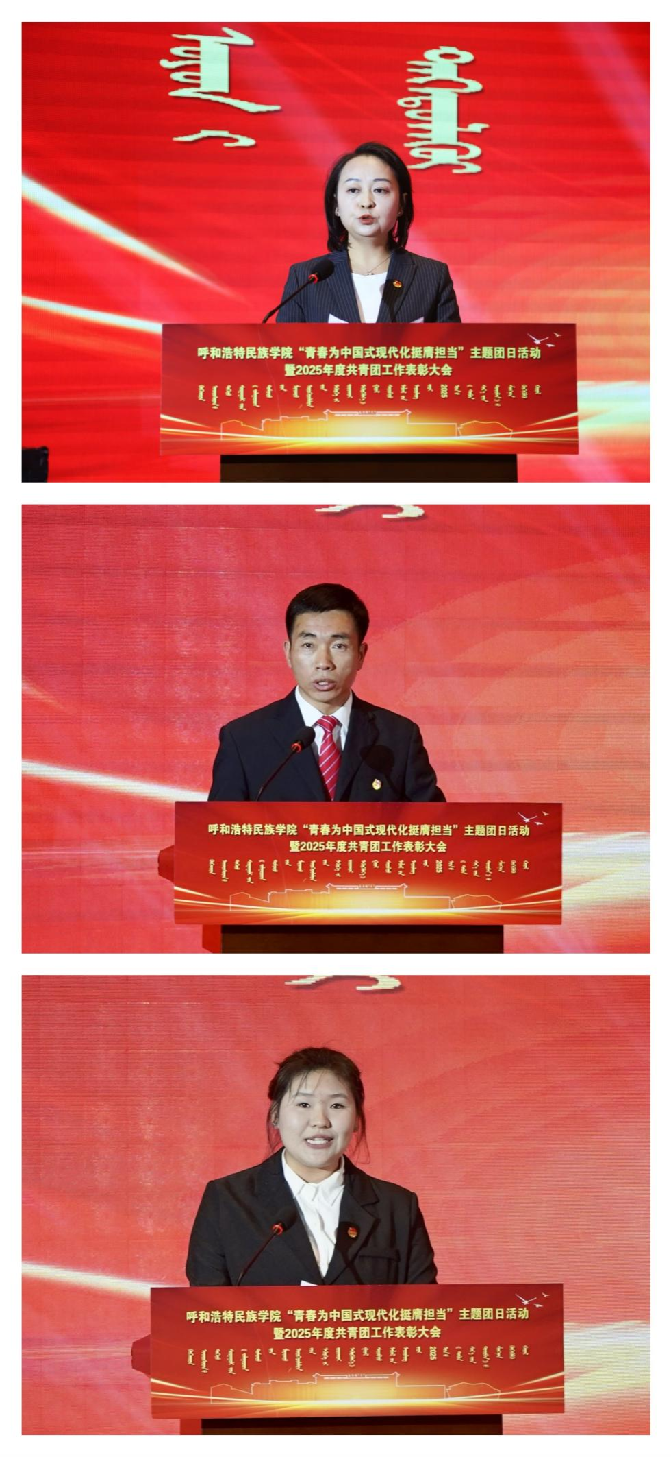 高喜天、刘瑞鸿、额尔敦布和分别为优秀共青团员代表颁奖