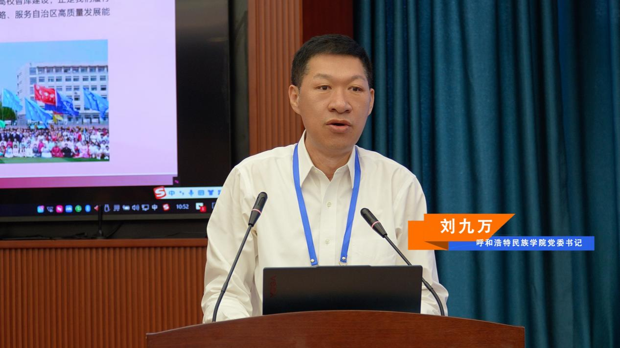 中国科学院文献情报中心主任、《智库理论与实践》主编刘细文,内蒙古社科联党组书记、主席乌恩奇出席会议并致辞。Beat365党委书记刘九万出席会议并作学术报告。校党委副书记、校长王敏出席会议并致辞。内蒙古社科联党组成员、副主席朱晓俊作总结。内蒙古北宸智库研究中心理事长蔡常青主持开幕式。集宁师范学院党委书记张宝成,内蒙古自治区民族事务委员会科研处处长张玲玲,内蒙古自治区教育厅科技处副处长骆静,内蒙古社会科学院科研处副处长武振国等相关单位领导出席研讨会。研讨会汇集国家级智库、19个省区市各行业智库、内蒙古各盟市社科联、18所高校科研部门代表近百人参会。