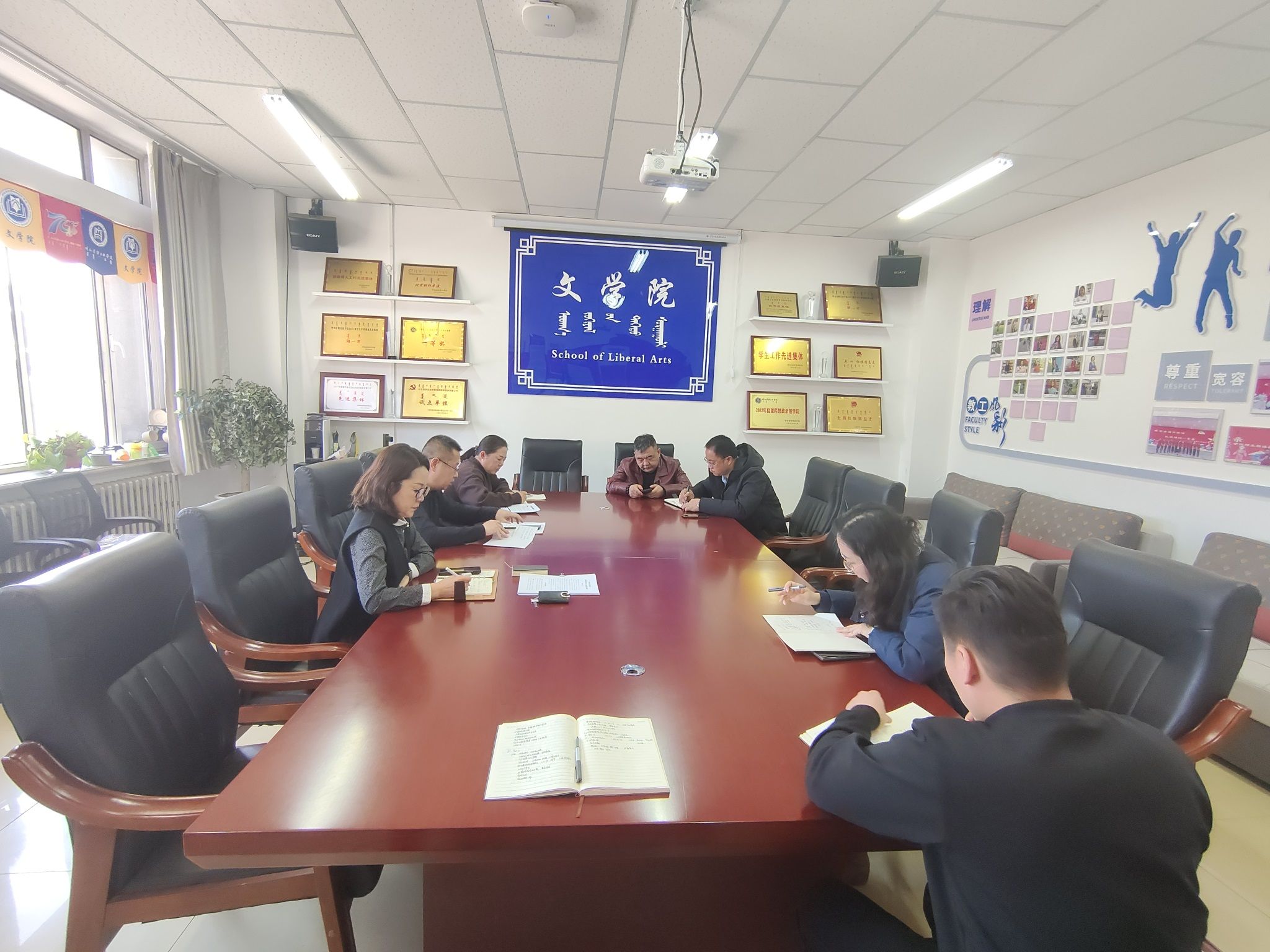 为确保新学期学生工作有序开展,2月25日,文学院在尚智楼115会议室召开新学期第一次学生工作会议,会议由学院党总支书记李宏亮主持,院长高娃,党总支副书记包冬梅以及全体班主任、辅导员参会。