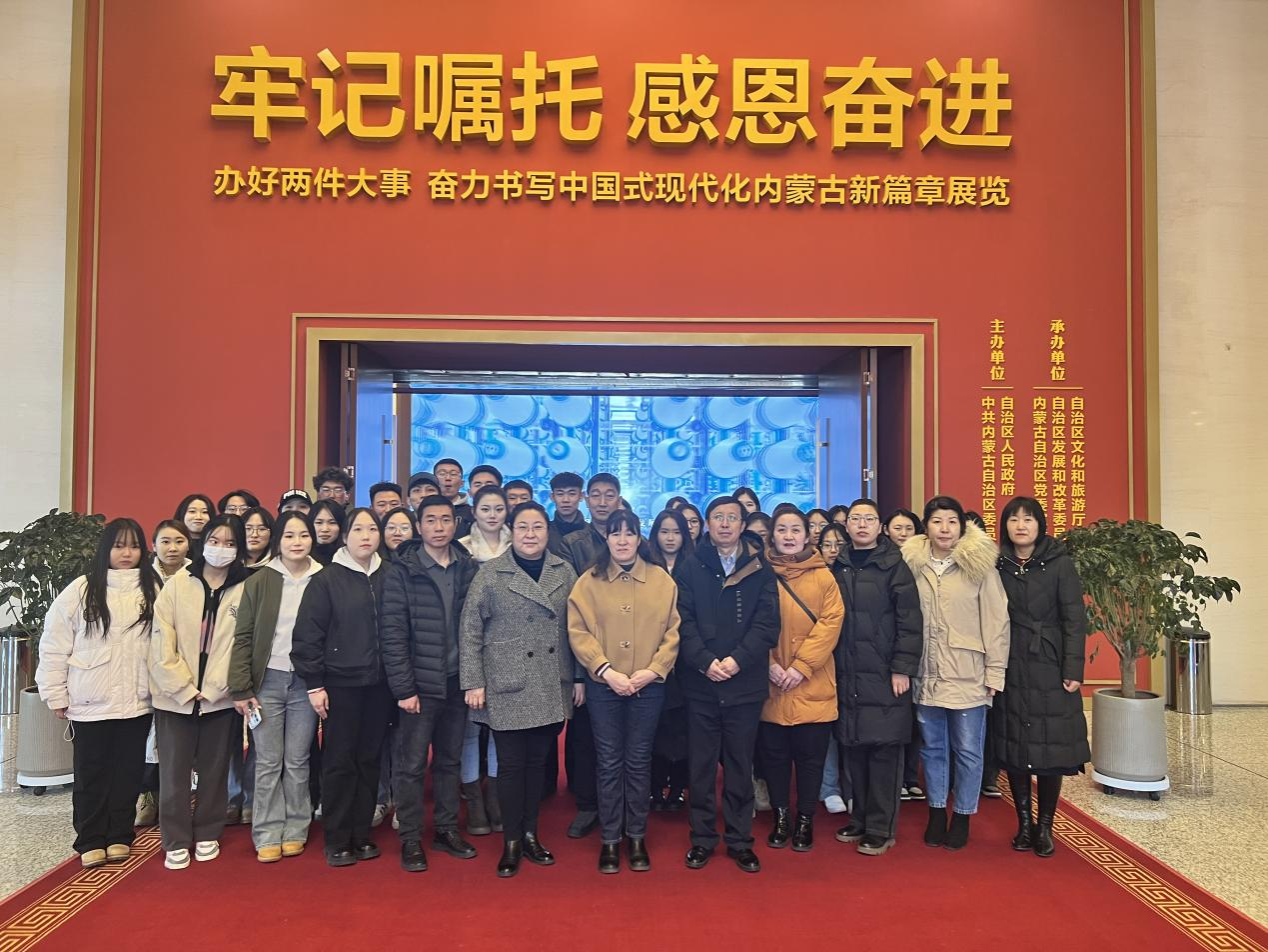 为巩固提升主题教育成果,教育引导师生牢牢铭记“六句话的事实和道理”,全面落实习近平总书记对内蒙古的重要指示精神,更加由衷地感党恩、听党话、跟党走。2月29日,公共管理学院党总支组织师生前往内蒙古自治区展览馆观看“牢记嘱托 感恩奋进——办好两件大事 奋力书写中国式现代化内蒙古新篇章展览”。