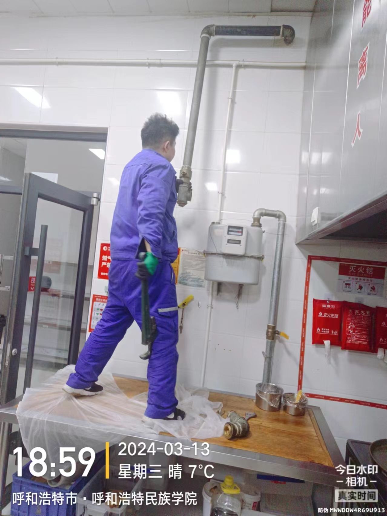 燃气辖区管理员和技术人员分别从天然气计量设备设施、管道设备附件和安防报警系统进行细致检查。学校水电维修科工作人员对食堂用电线路和用电设备进行了安全排查,确保食堂内燃气、电器、电路的安全使用。