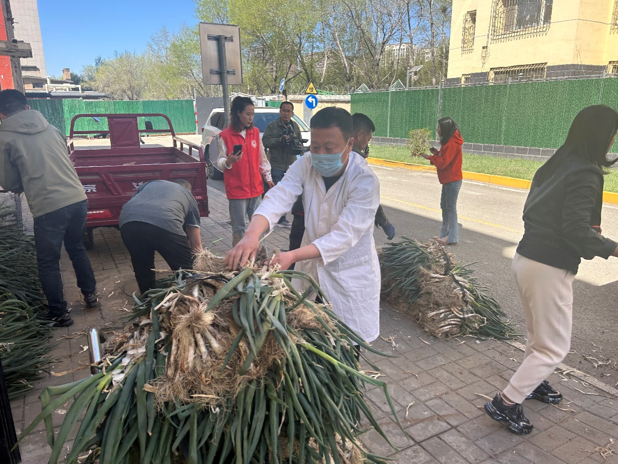 学校后勤管理处餐饮服务中心通过内蒙古电视台和新城区市场监督管理局海东路市场监督管理所搭建的平台,充分调研市场、食品原料贮存和食堂运营能力,组建临时志愿者团队从哈拉沁村民处采购大葱约1700斤左右,以实际行动帮助农户解决蔬菜销售问题。