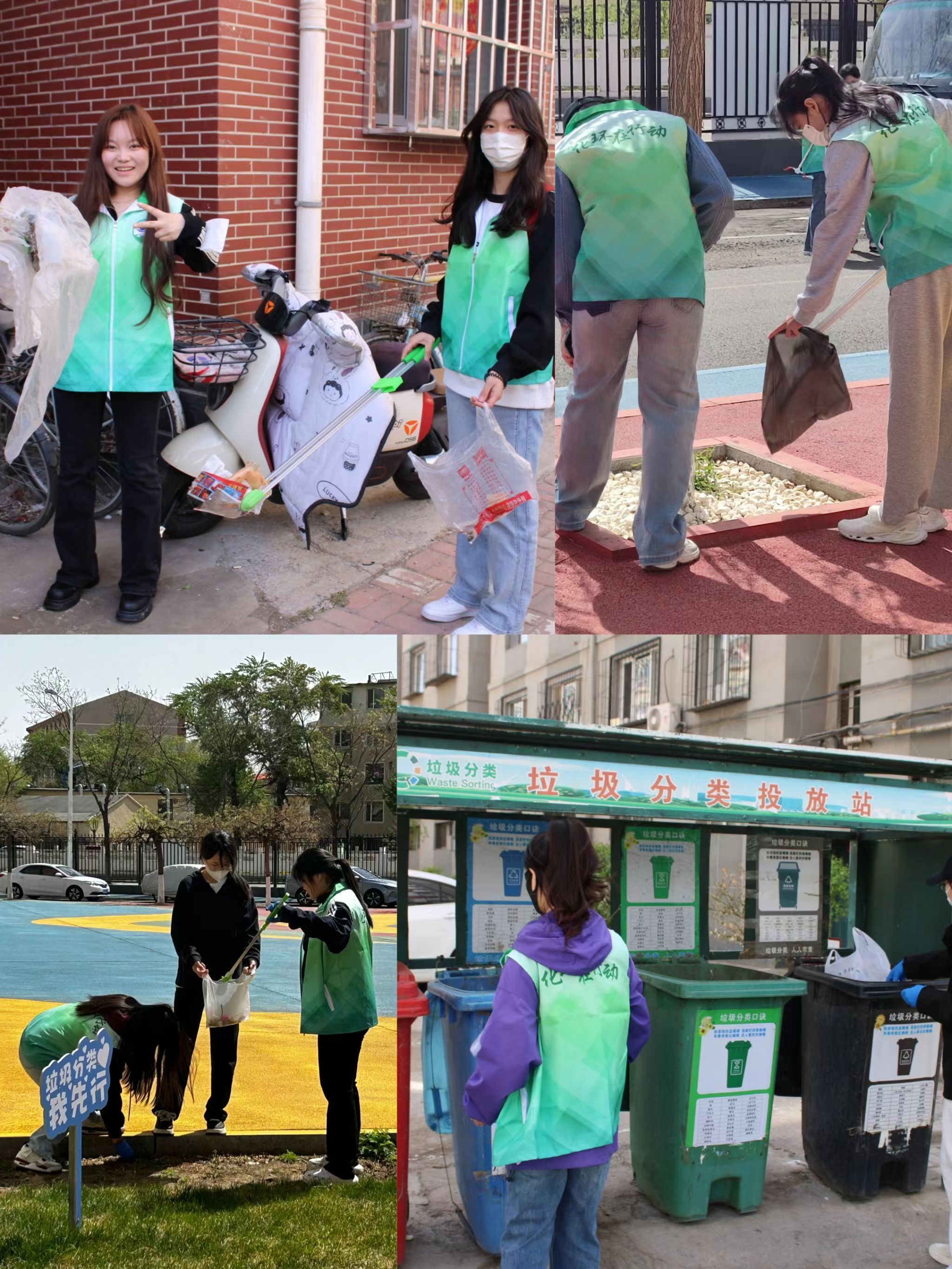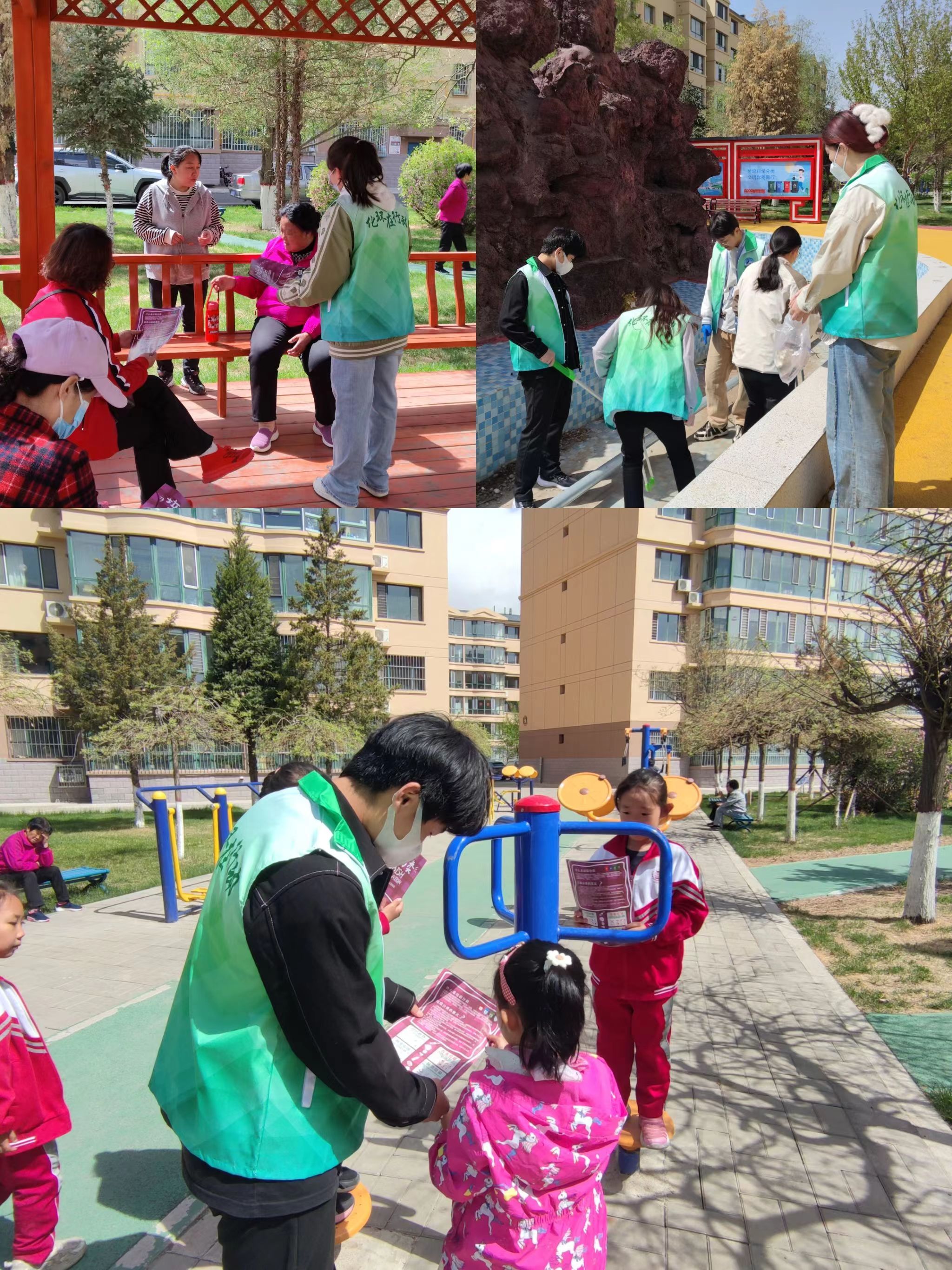 活动过程中,同学们满怀热情地在社区的各个小区清捡垃圾、发放垃圾分类宣传单。大家分组行动,携带垃圾袋、手套、口罩、垃圾捡拾器等工具,沿着小区内的各处角落,拾捡丢弃的生活垃圾。