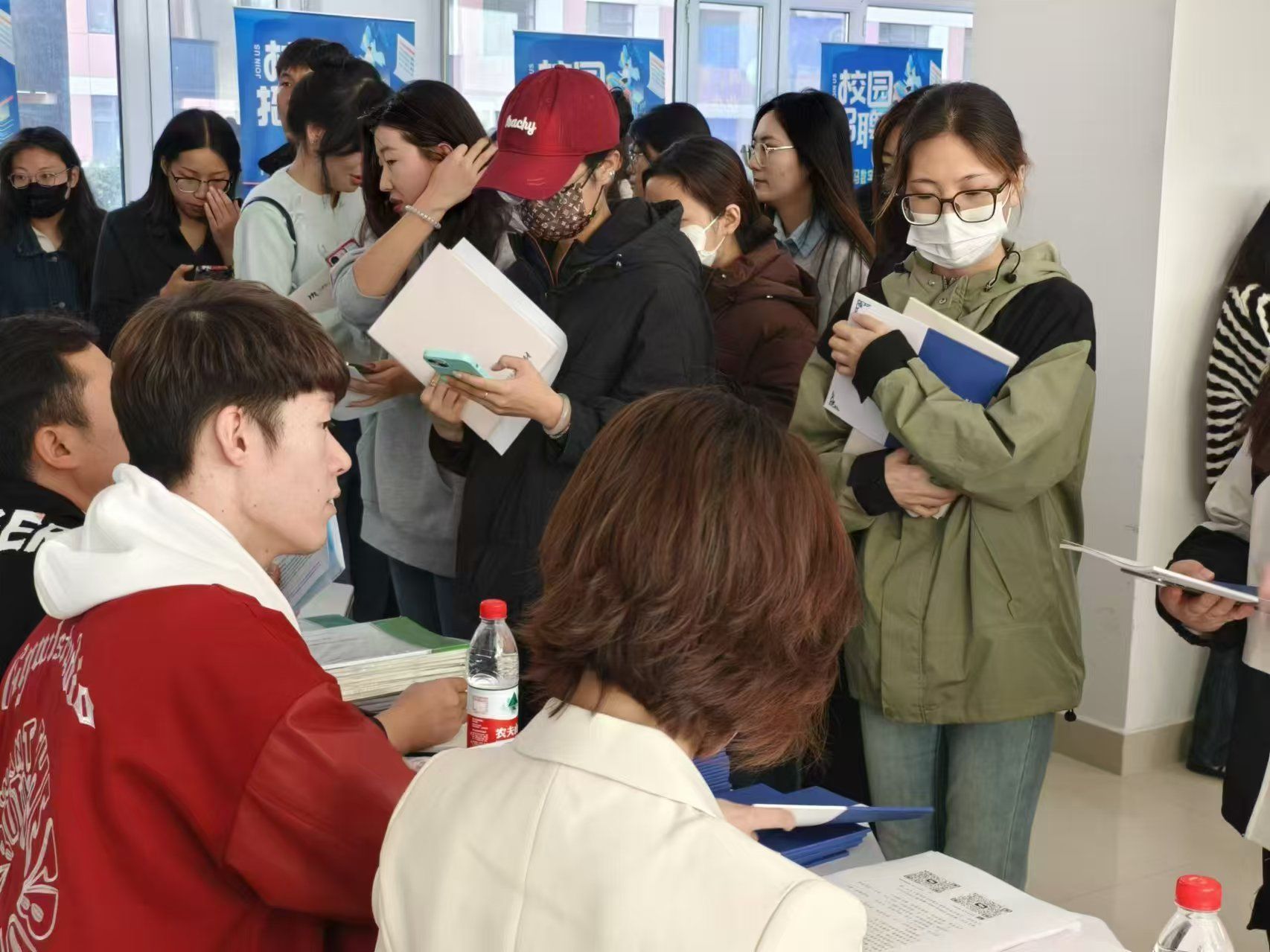 招聘现场部分大三、大二的学生也来到现场观摩,感受求职氛围,提前接触就业市场,了解企业需求和行业动态,为未来的职业规划做好准备。求职毕业生们带着精心准备的简历穿梭于各个展位,驻足详细阅读招聘信息,主动了解用人单位情况,积极与招聘人员交流。各用人单位代表向应聘者详细介绍单位的岗位职责、薪资福利、晋升空间,并与毕业生就未来职业规划与行业前景开展积极沟通。各学院学生工作负责人及毕业生辅导员深入现场,与企业进行交流,了解企业用人需求,掌握行业发展动态,为学生提供全程的指导、推荐以及现场签约服务。