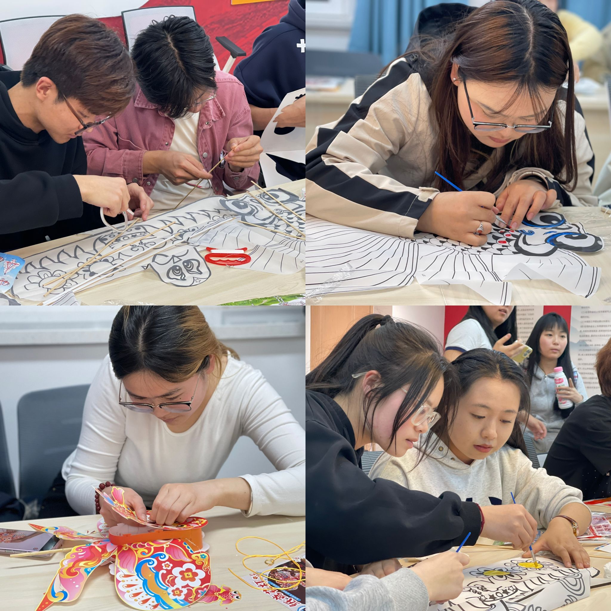 同学们不仅可以近距离观赏到各式各样的精美纸鸢,还有机会亲自动手制作,深入感受这一传统文化的独特魅力。在专业的指导下,同学们学习了纸鸢的历史渊源、制作工艺以及飞行技巧。从选材、设计到制作,每一步都充满了挑战与乐趣。