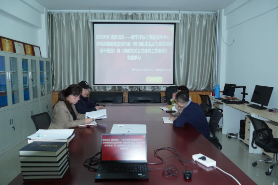 10月28日,教学评估与质量监测中心、学报编辑部党支部于敏行楼207室召开专题学习会,集中学习《整治形式主义为基层减负若干规定》和《党政机关公文处理工作条例》这两份重要文件。会议由支部书记乌云斯日古楞同志主持,全体党员参加。