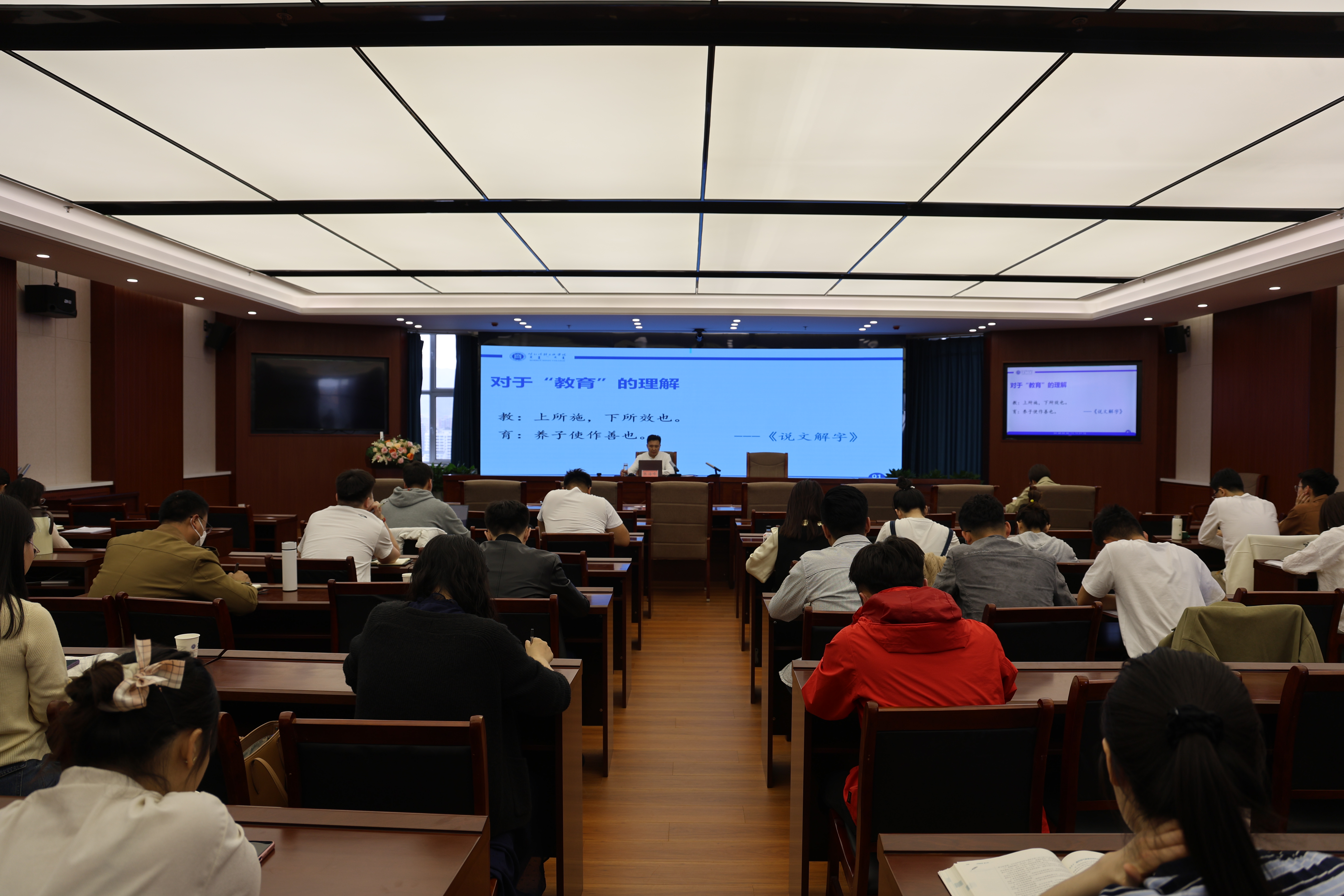 讲座中,张海峰引经据典,结合自身从教经历深入讲解了“教育”、“教学”的内涵,并围绕“四有”好老师、教育家精神娓娓道来,为新入职教师解读了新时代背景下教师如何承担起“传道授业解惑”的责任。讲座内容十分丰富,不仅有前瞻性和引领性,更有理论解读与具体方法指导,为新入职教师提供了宝贵的教学育人经验,大家纷纷表示深受启发,为未来的教师生涯迈出了坚实的第一步。