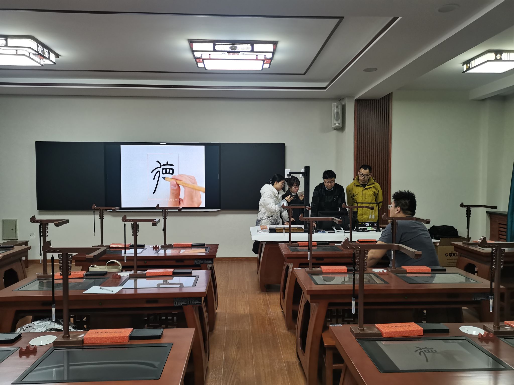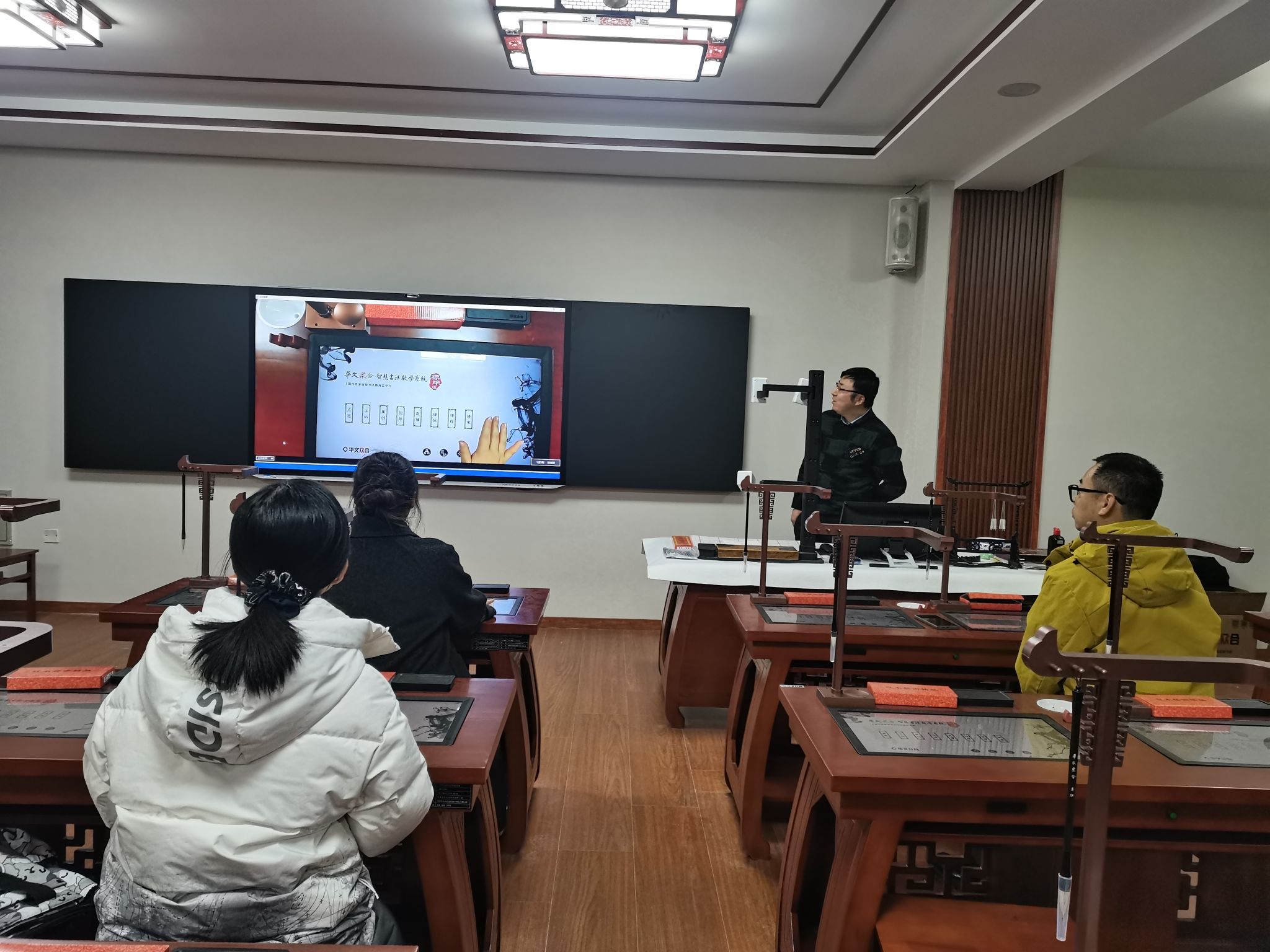 2月26日,师范生技能训练中心为提升规范汉字课程教学质量,举办了智慧书法教室设备使用培训。担任规范汉字课程教师和师范生技能训练中心相关人员参加了培训。