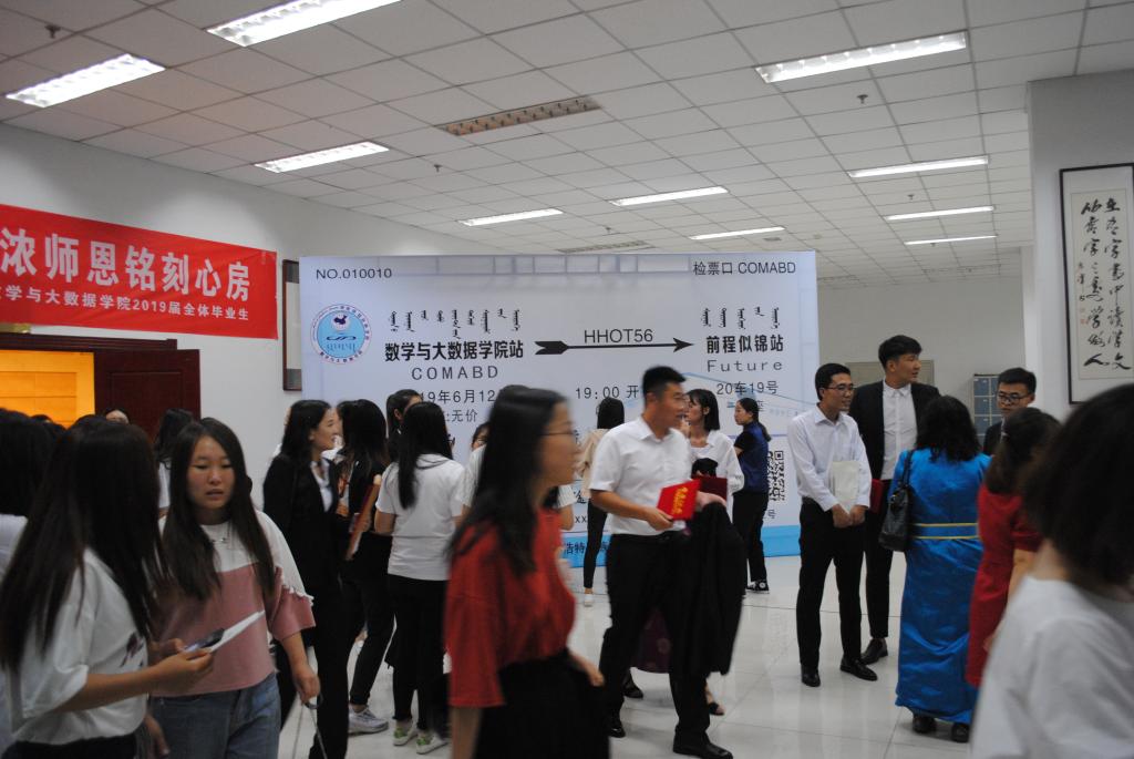 2019年6月12日19:00,数学与大数据学院2019毕业生毕业典礼暨表彰大会在图书馆一楼报告厅举行。数学与大数据学院党总支书记布和朝鲁、党总支副书记郝喜凤、主持工作副院长王海清、副院长额尔敦其其格、办公室主任乌云其其格、小学数学教育教研室主任其木格、经济数学教研室主任白秀及班主任、任课老师、学生代表参加了本次大会。会议由辅导员金玲主持。