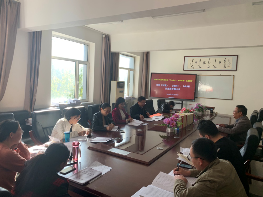 根据学校“不忘初心、牢记使命”主题教育领导小组印发的《关于在“不忘初心、牢记使命”主题教育中对照《党章》、《准则》、《条例》找差距的工作方案要求,10月31日我院全国黄大年式教师团队党支部在学院党员活动室(沃德楼205)开展对照《党章》、《准则》、《条例》找差距专题会议。