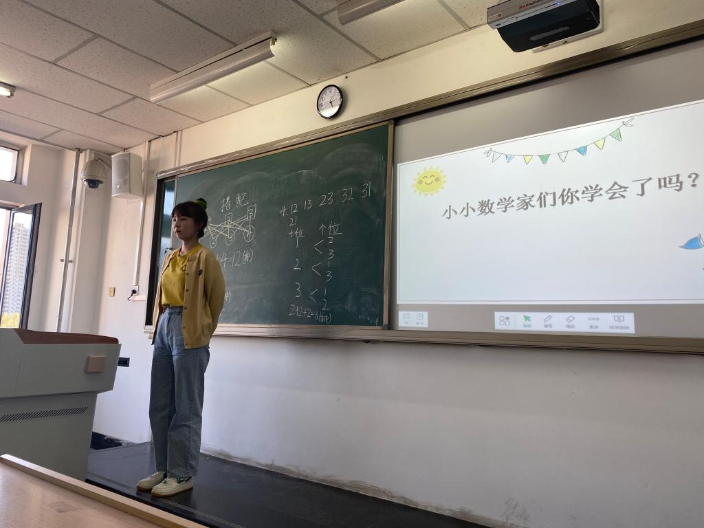 比赛的结尾,评委老师们对学生提出了几点建议:一、平时多阅读多思考多积累多训练,开阔眼界、提高能力。二、要加强理论学习,钻研课标、教材和教参,对小学数学内容全面系统地研究学习;三、是加强基本功训练,注意科学性、趣味性和教育性;四、授课内容可以结合课程思政。