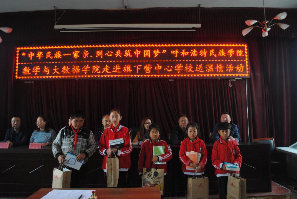 为全面深入持久开展民族团结进步创建,进一步巩固和发展平等、团结、互助、和谐的社会主义民族关系,9月23日上午数学与大数据学院走进旗下营中心学校举行送温情活动,活动内容丰富,形式多样。参加本次活动的有学校党委委员宣传部部长王玉玲、数学与大数据学院领导班子成员、就业指导处处长包仓、全国黄大年式教师团队成员、卓资县教育体育局副局长李兵、旗下营中心学校领导班子成员及两校师生共300余人。